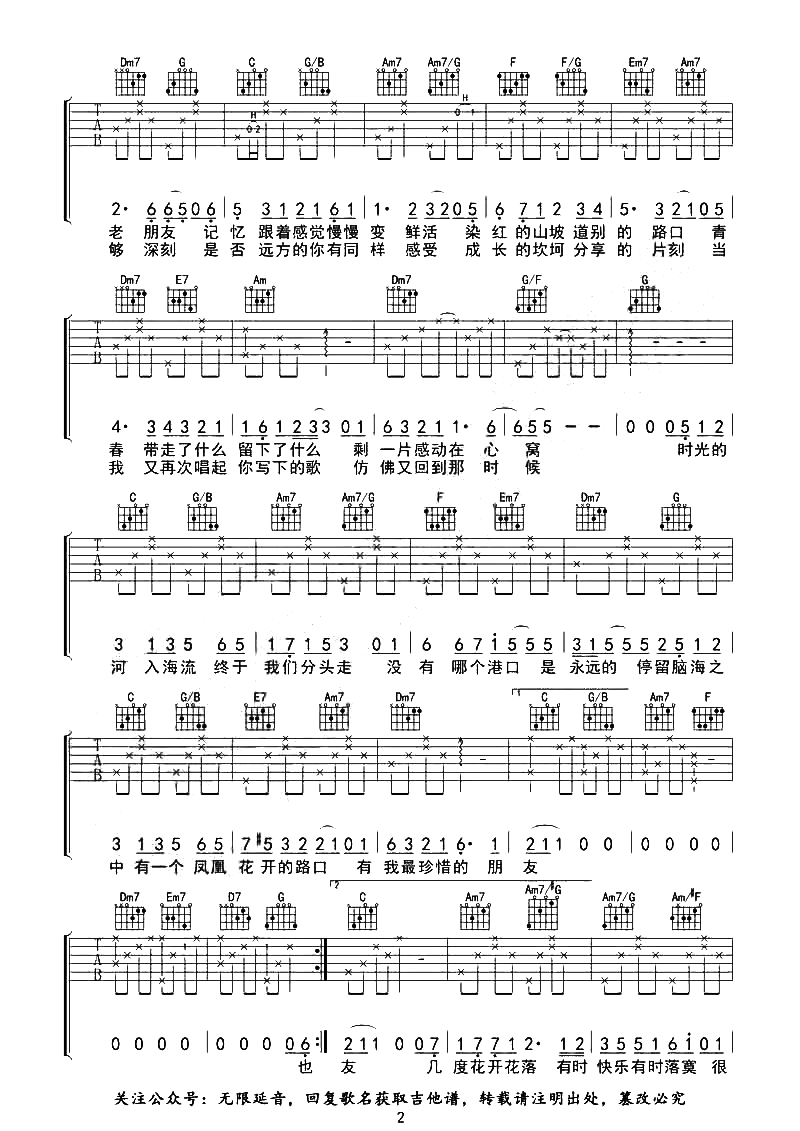 凤凰花开的路口吉他谱 - 凤凰花开的路口 - C调吉他弹唱谱