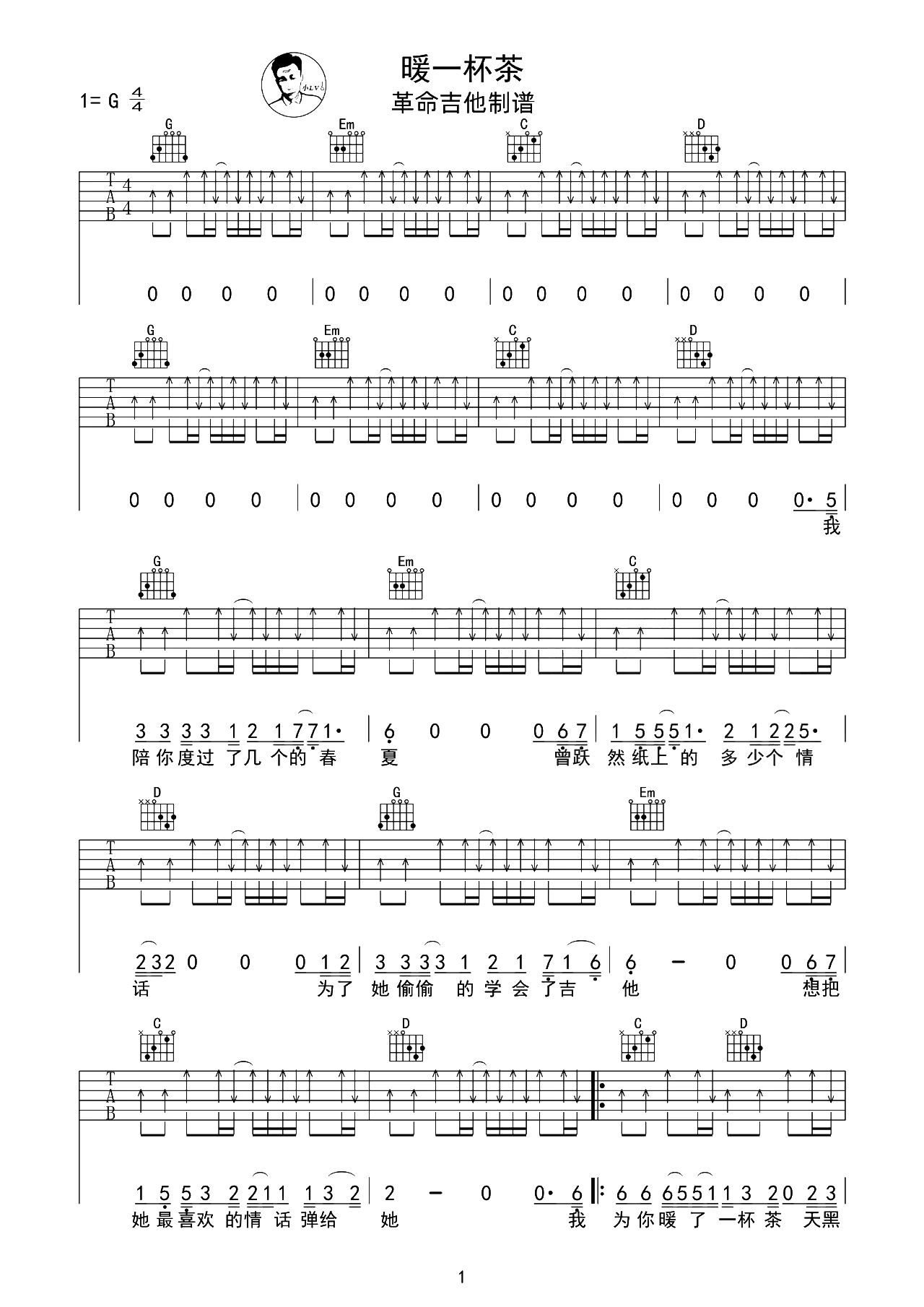 暖一杯茶吉他谱 - 邵帅 - G调吉他弹唱谱 - 原版