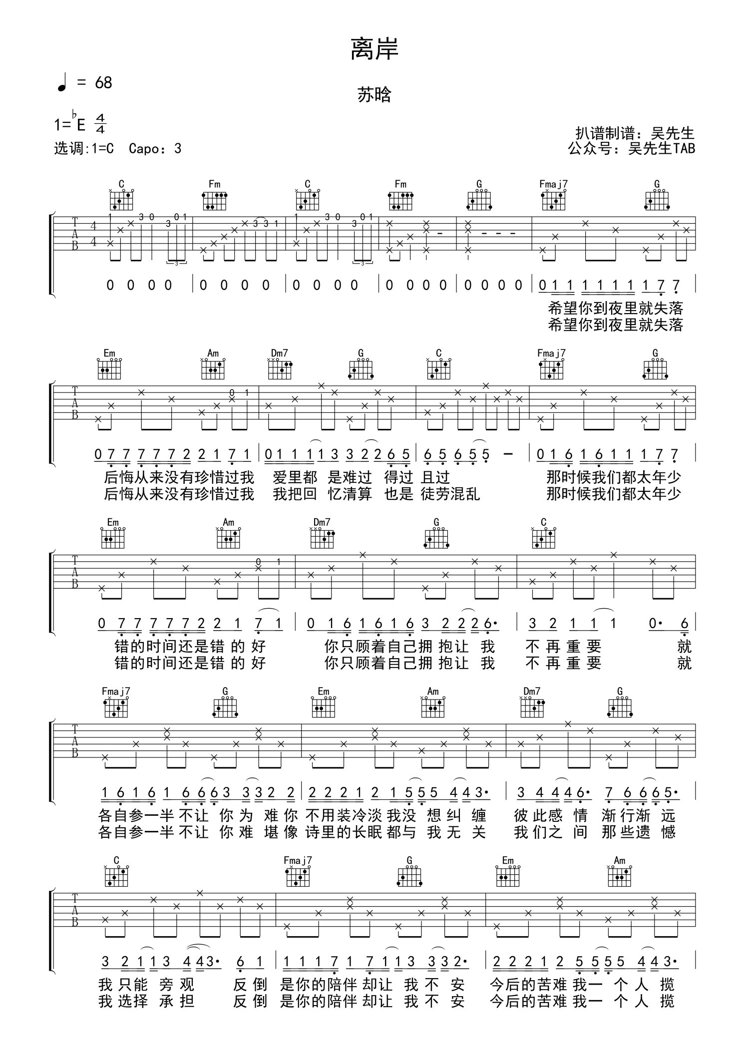 • 离岸吉他谱 - 苏晗 - C调吉他弹唱谱第1张
