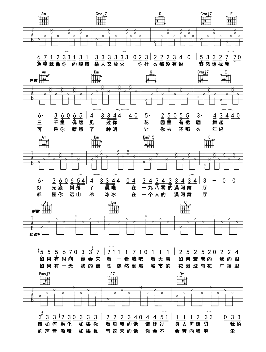 当前位置:琴谱网>吉他弹唱>漠河舞厅