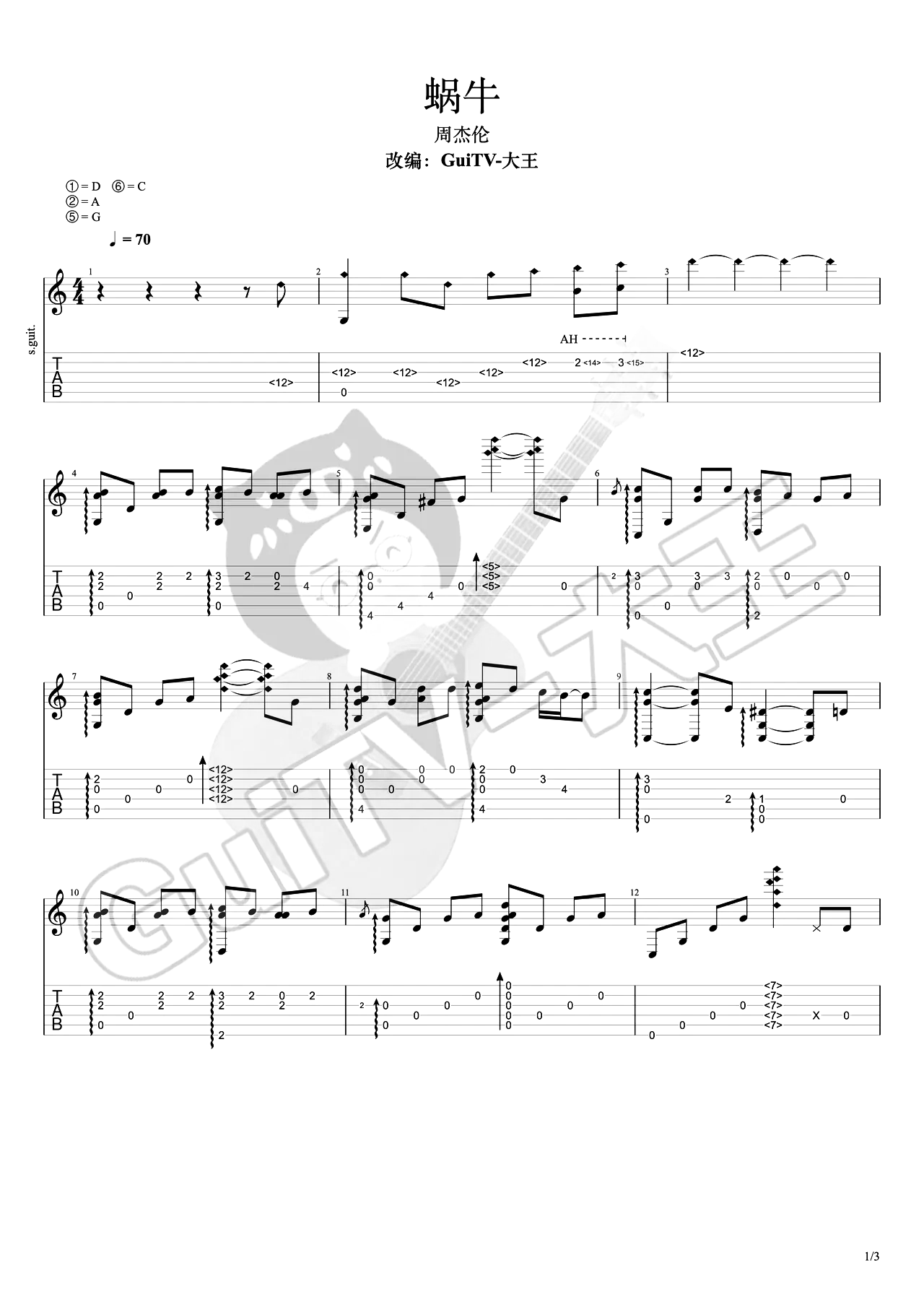 蜗牛吉他谱 - 周杰伦 - 吉他独奏谱