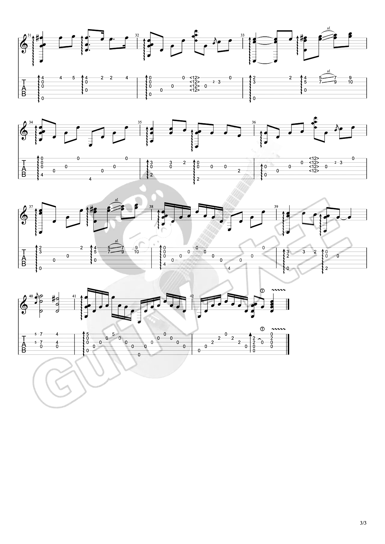 曲谱介绍: 蜗牛吉他谱,改变自周杰伦《蜗牛》的指弹曲目,共3张高清PNG图片谱例,随谱附有歌曲的指弹演示示范视频,琴友们弹奏的时候可参考练习。 弹奏小提示:x代表拍弦,o代表手腕打底鼓。