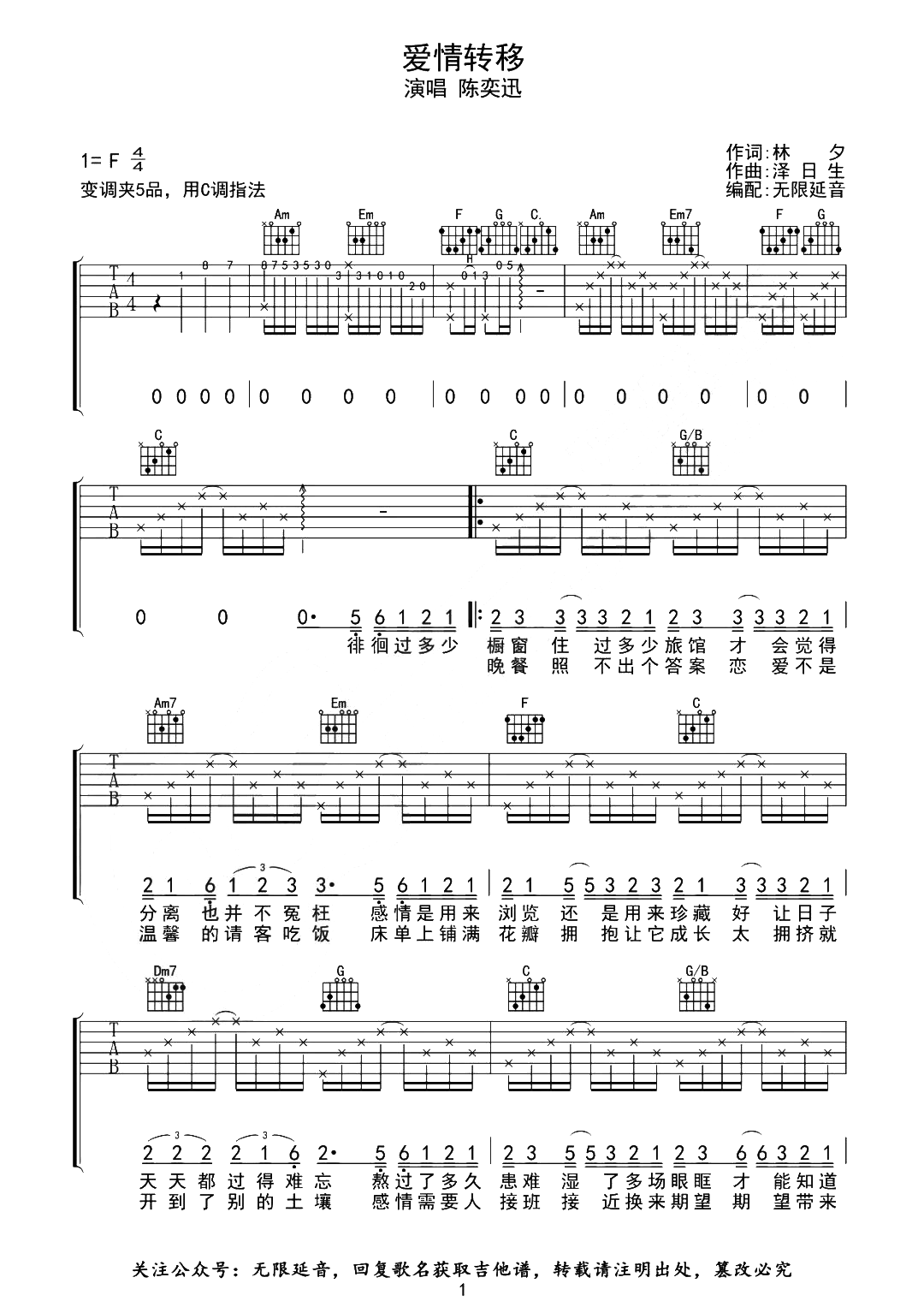 爱情转移吉他谱 - 爱情转移 - C调吉他弹唱谱 - 原版