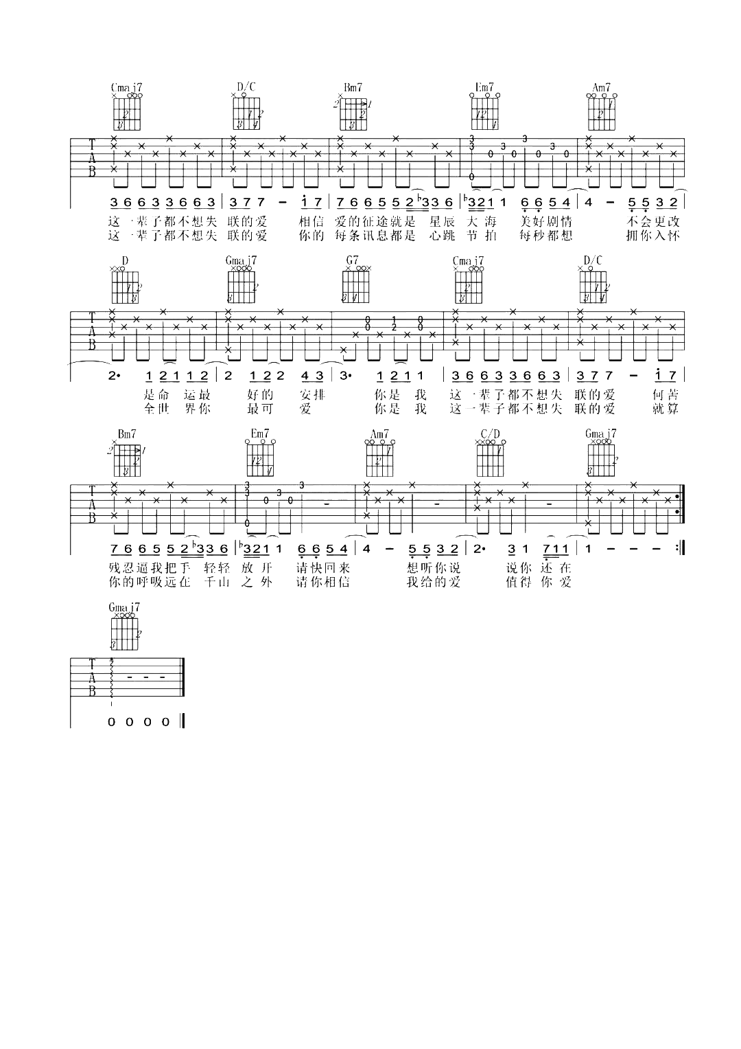 当前位置:琴谱网>吉他弹唱>永不失联的爱