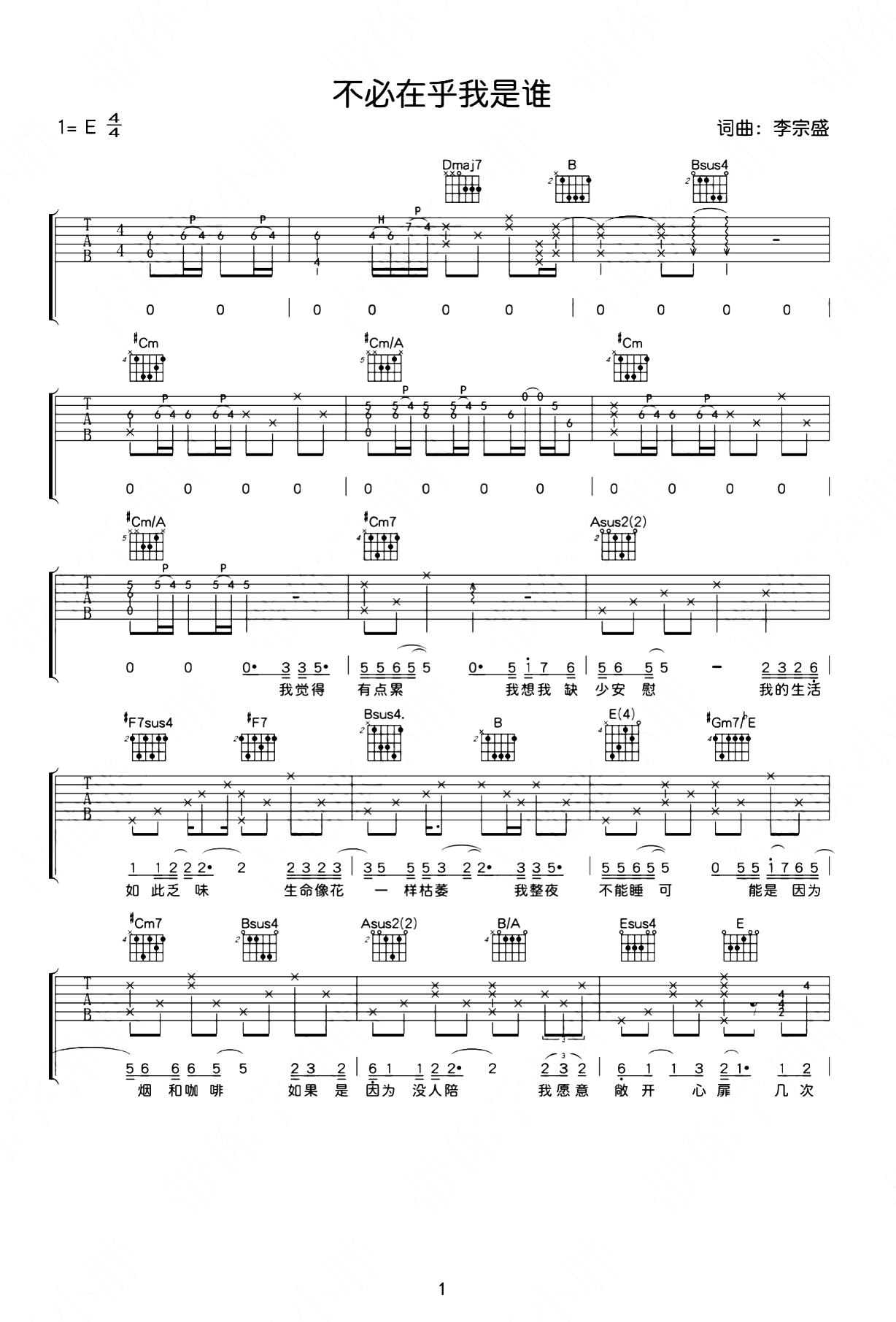 不必在乎我是谁吉他谱 - 李宗盛 - E调吉他弹唱谱 - 原版
