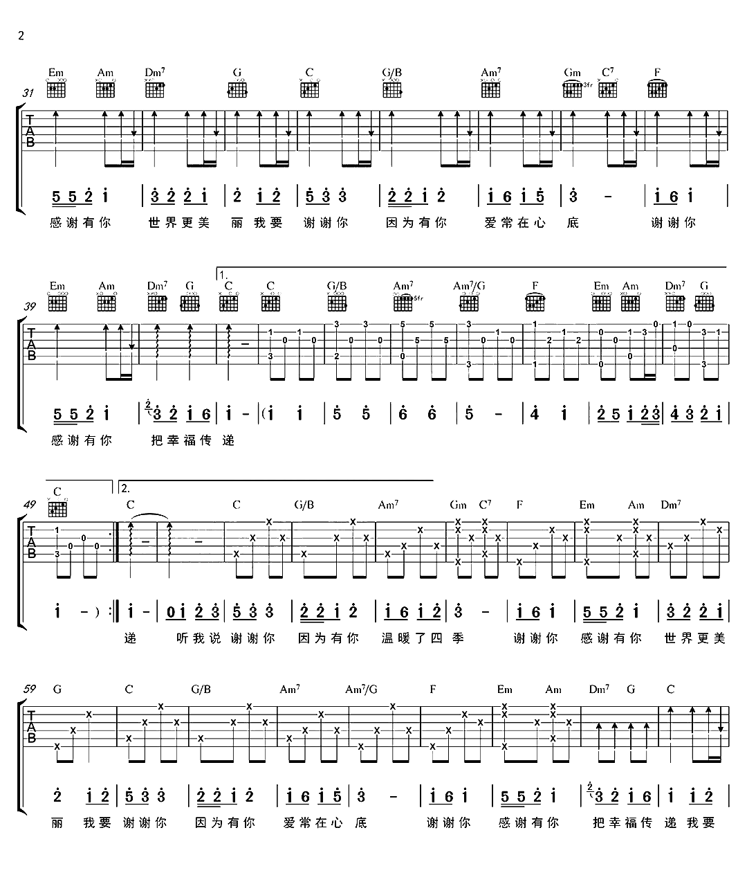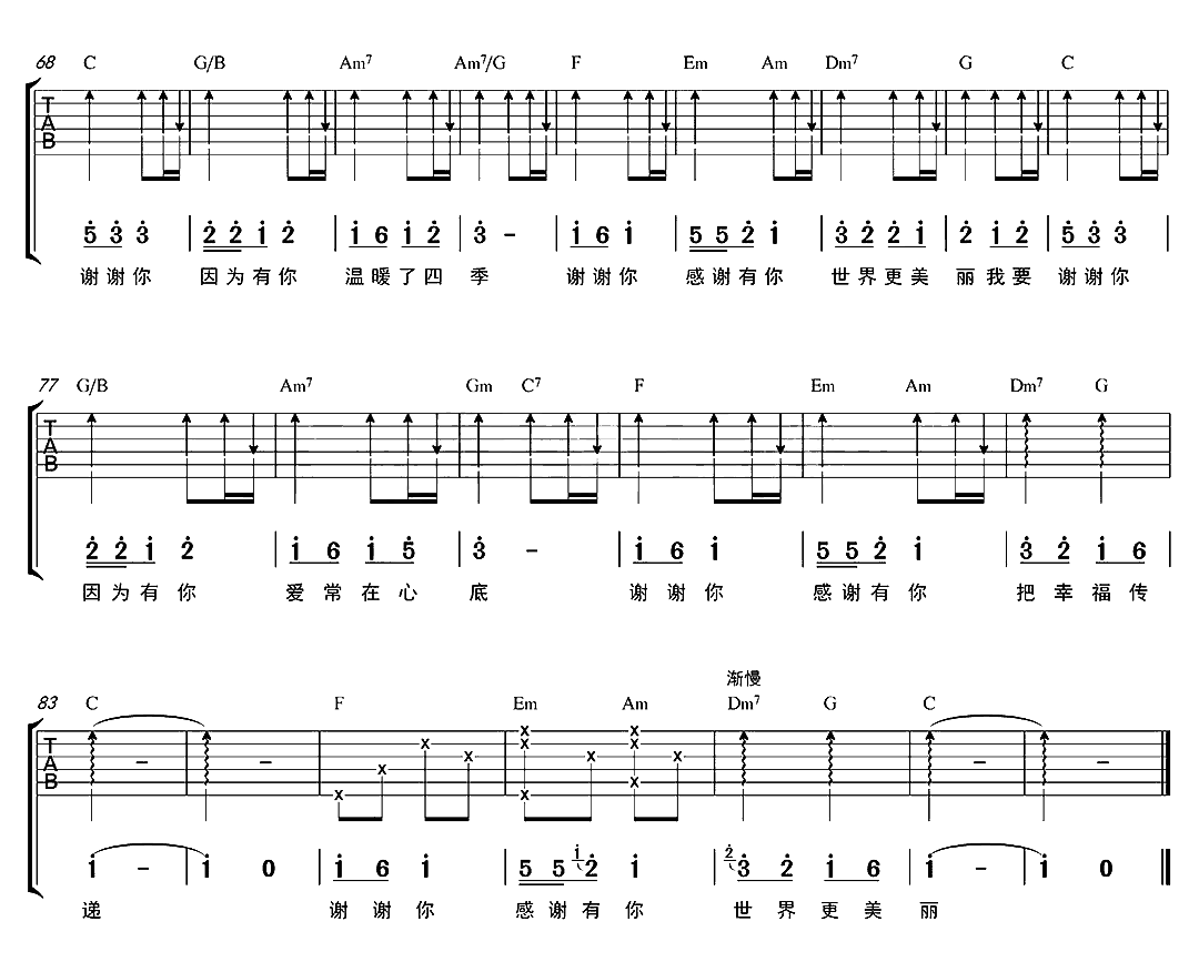 听我说谢谢你吉他谱 - 听我说谢谢你 - C调吉他弹唱谱 - 原版