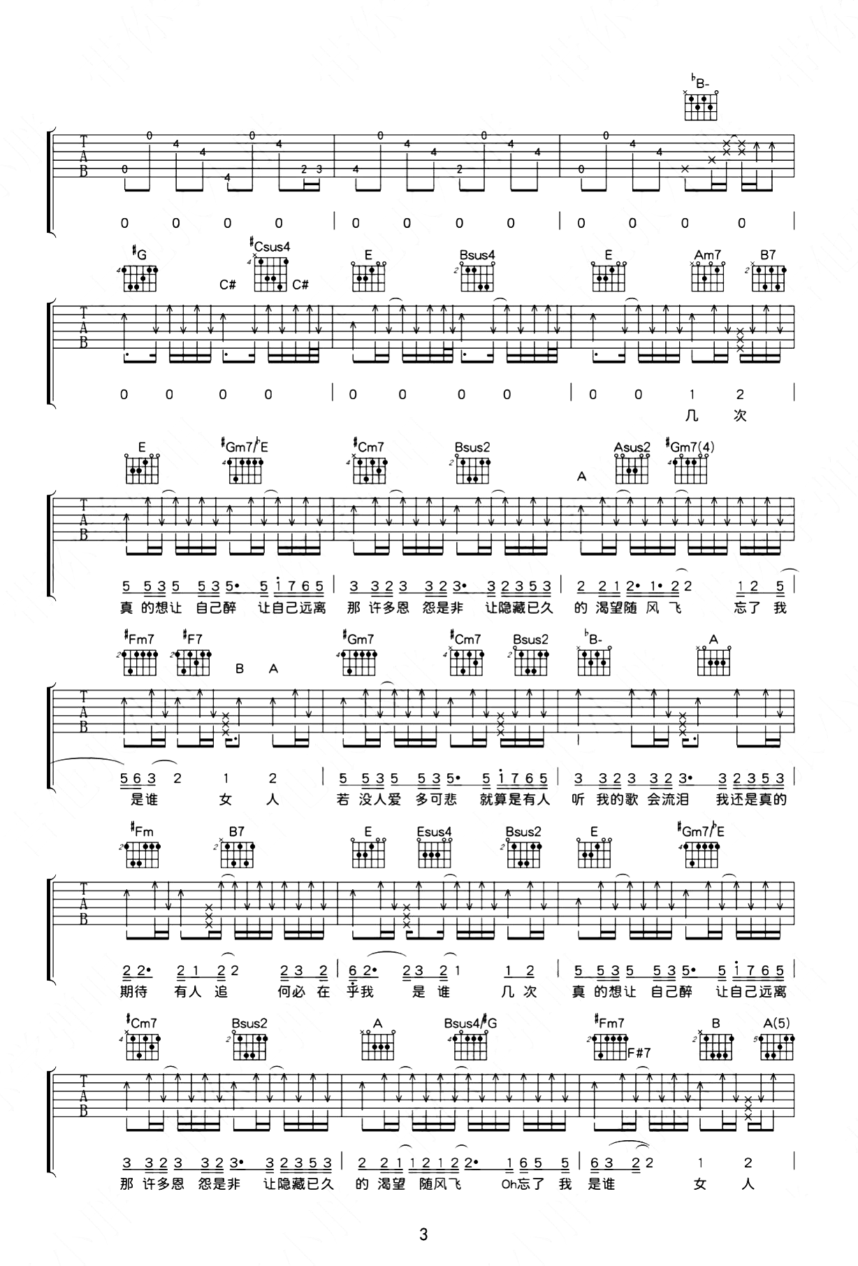 不必在乎我是谁吉他谱 - 不必在乎我是谁 - E调吉他弹唱谱 - 原版