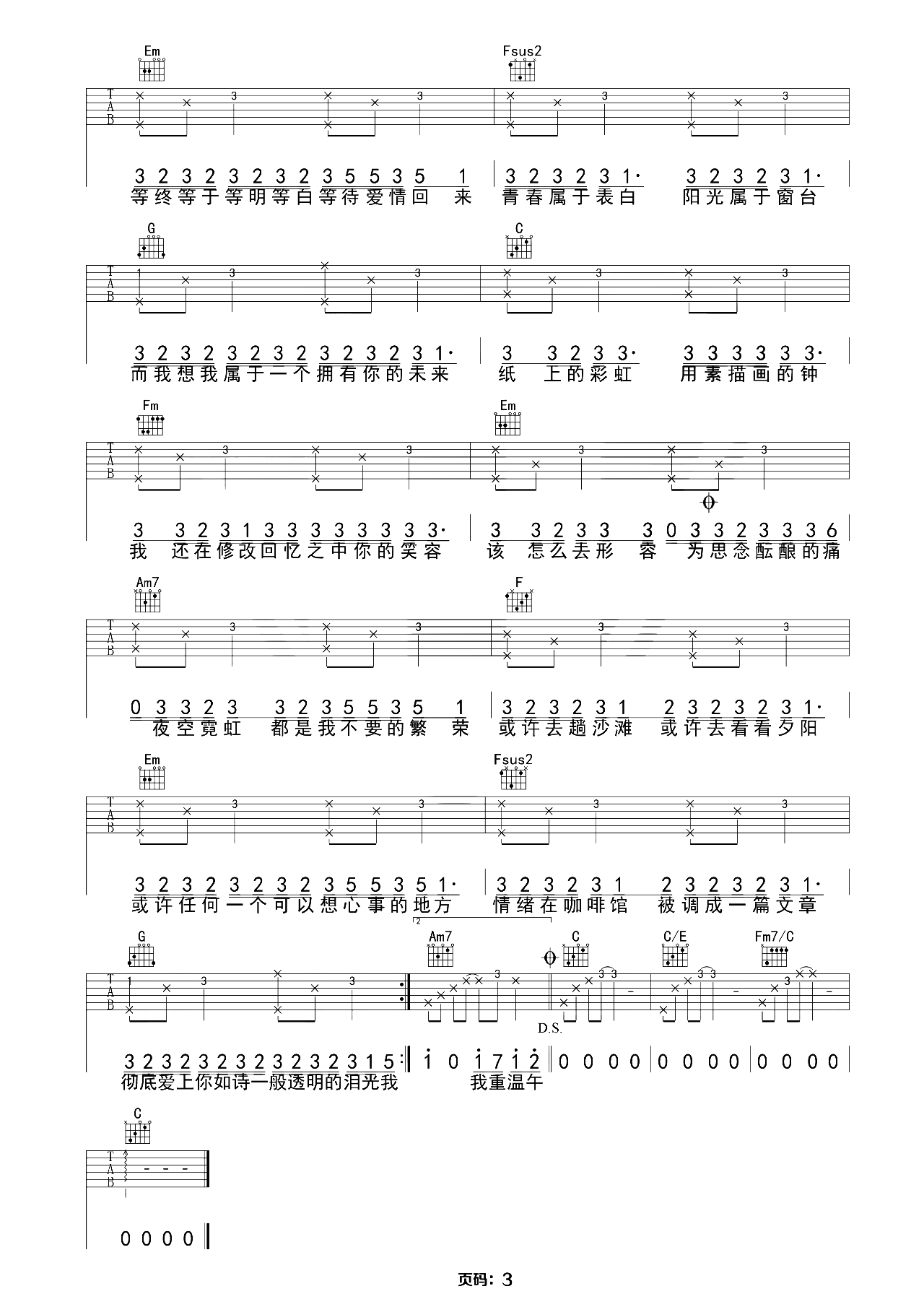 当前位置:琴谱网>吉他弹唱>手写的从前