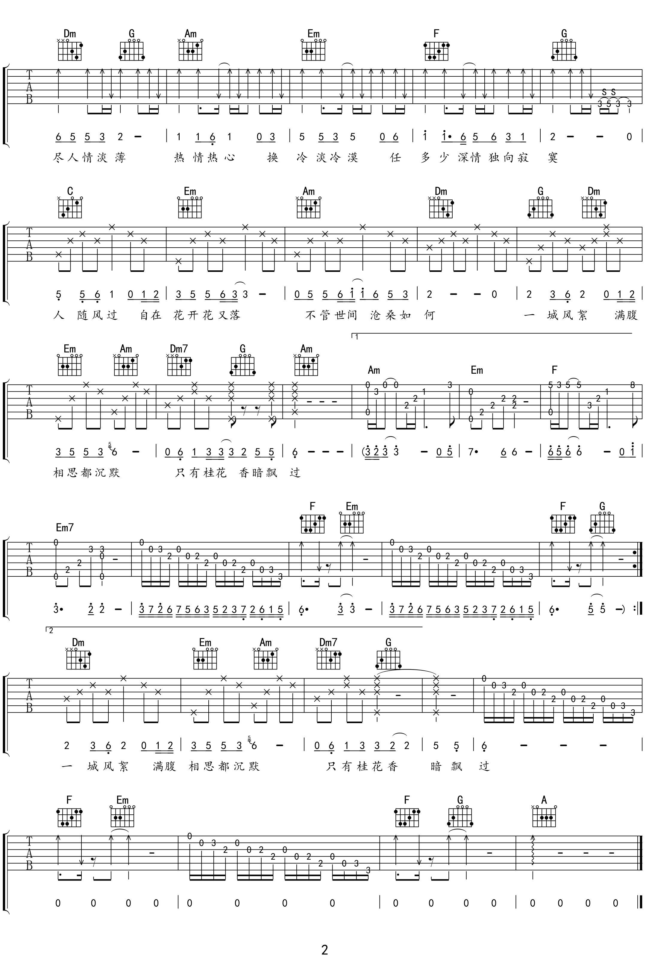 八月桂花香吉他谱 - 尘缘 - C调吉他弹唱谱