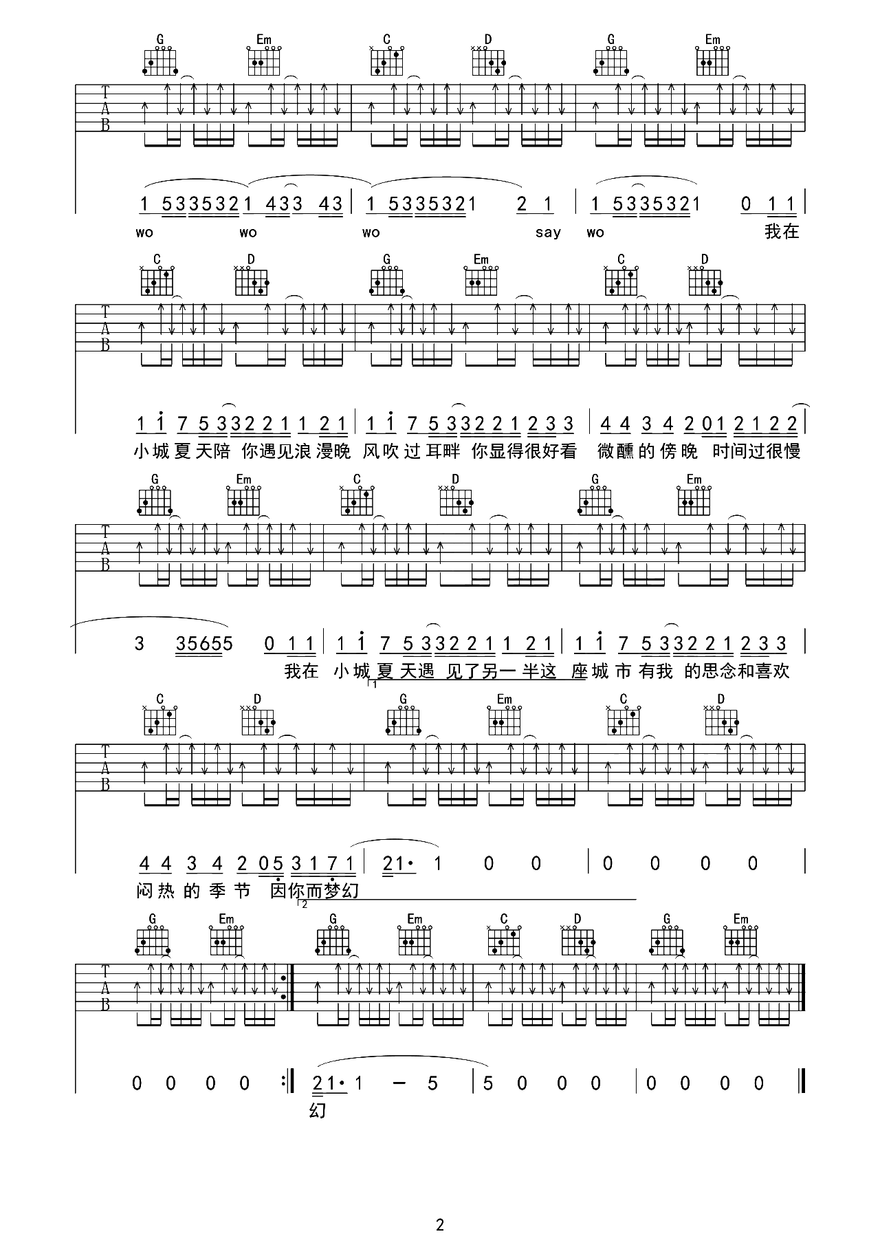 当前位置:琴谱网>吉他弹唱>小城夏天