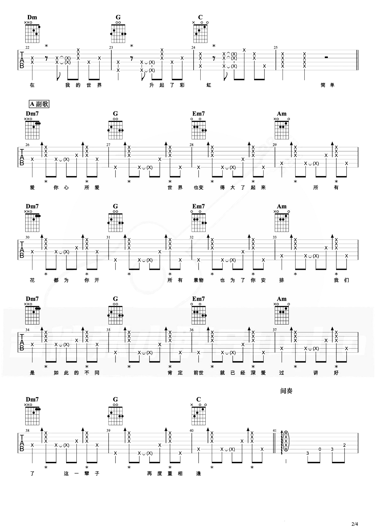 当前位置:琴谱网>吉他弹唱>再度重相逢