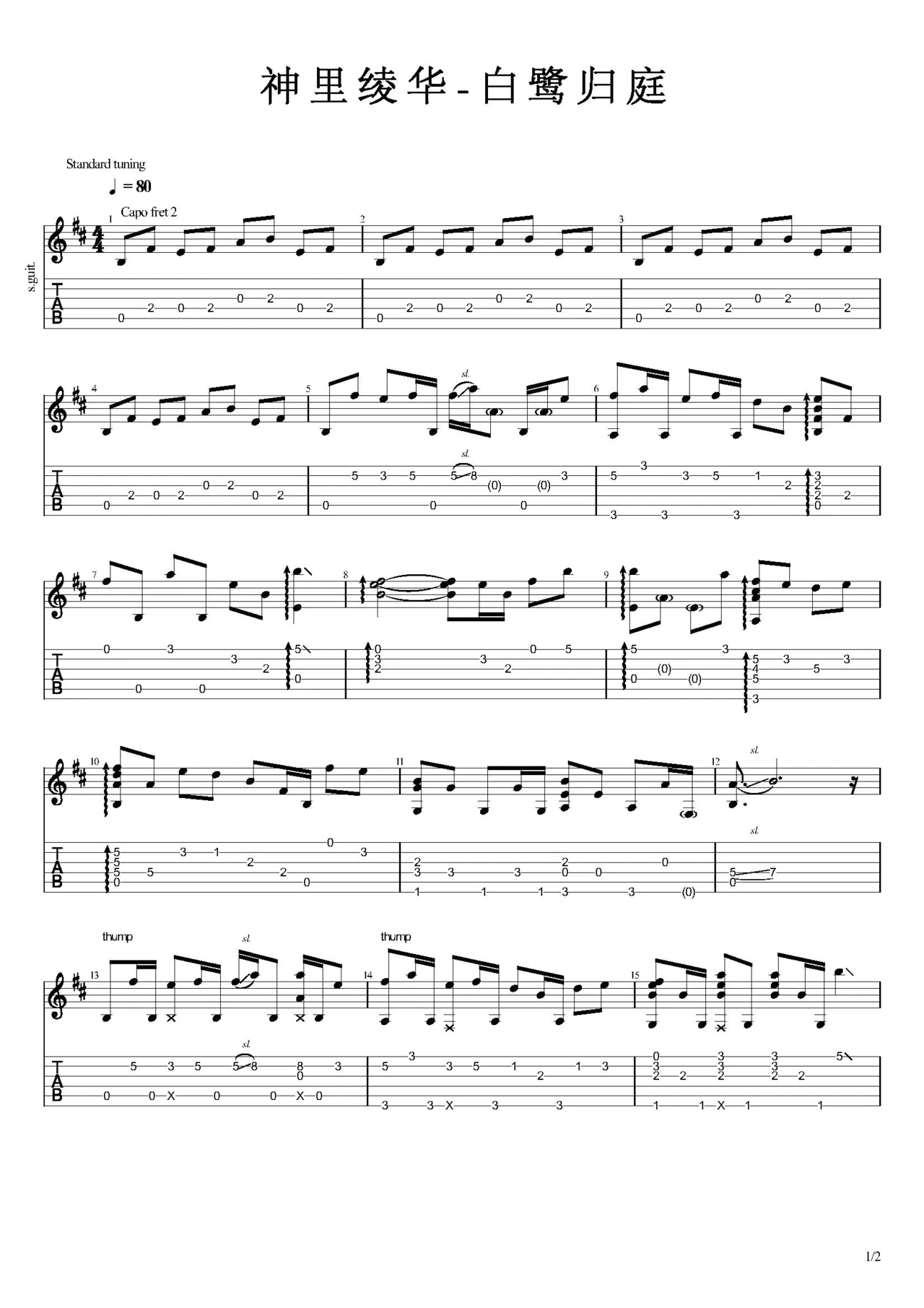 神里绫华-白鹭归庭吉他谱 - 神里绫华 - 吉他独奏谱