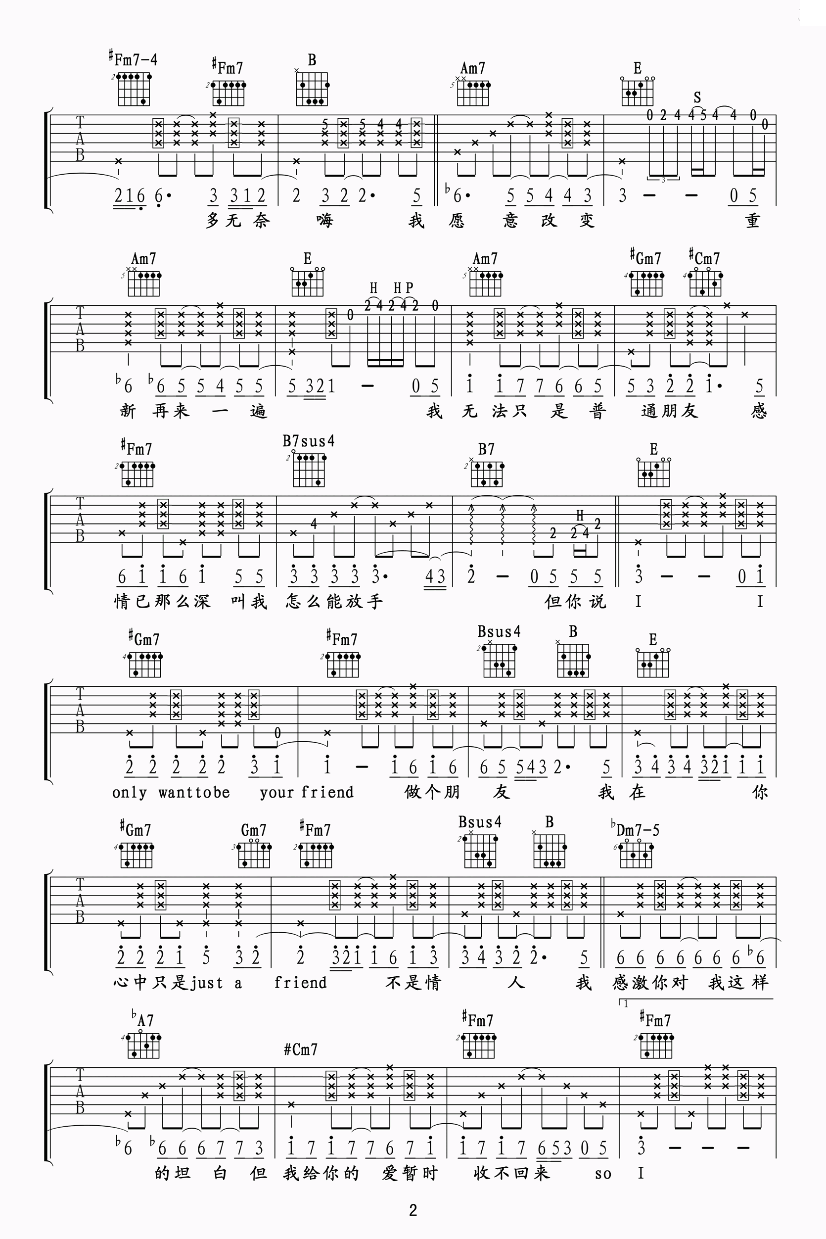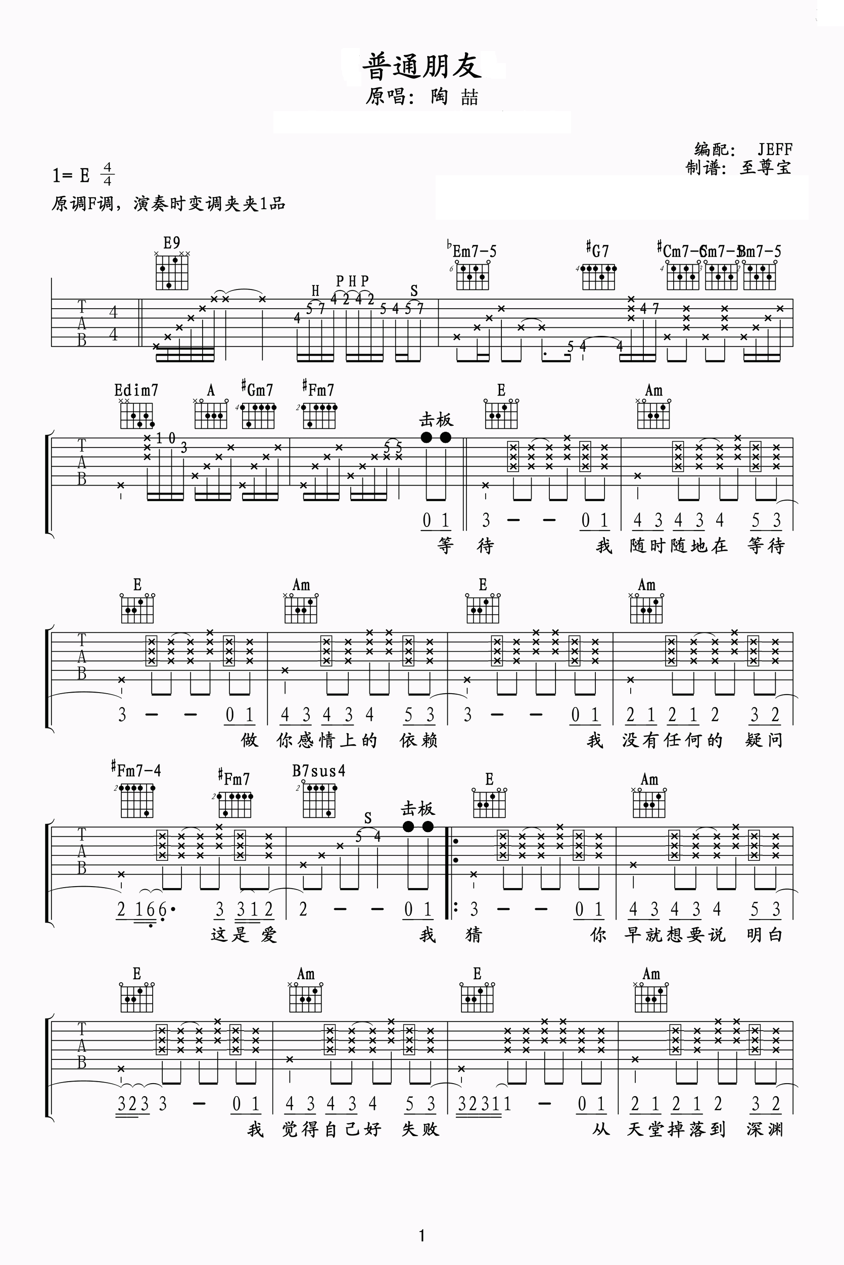 普通朋友吉他谱 - 陶喆 - 吉他弹唱谱 - 原版