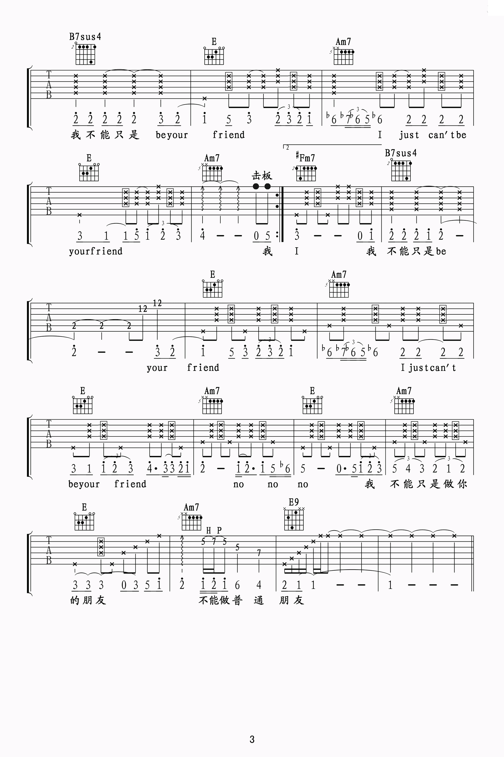 琴谱网为您精心推荐 普通朋友 高清图谱