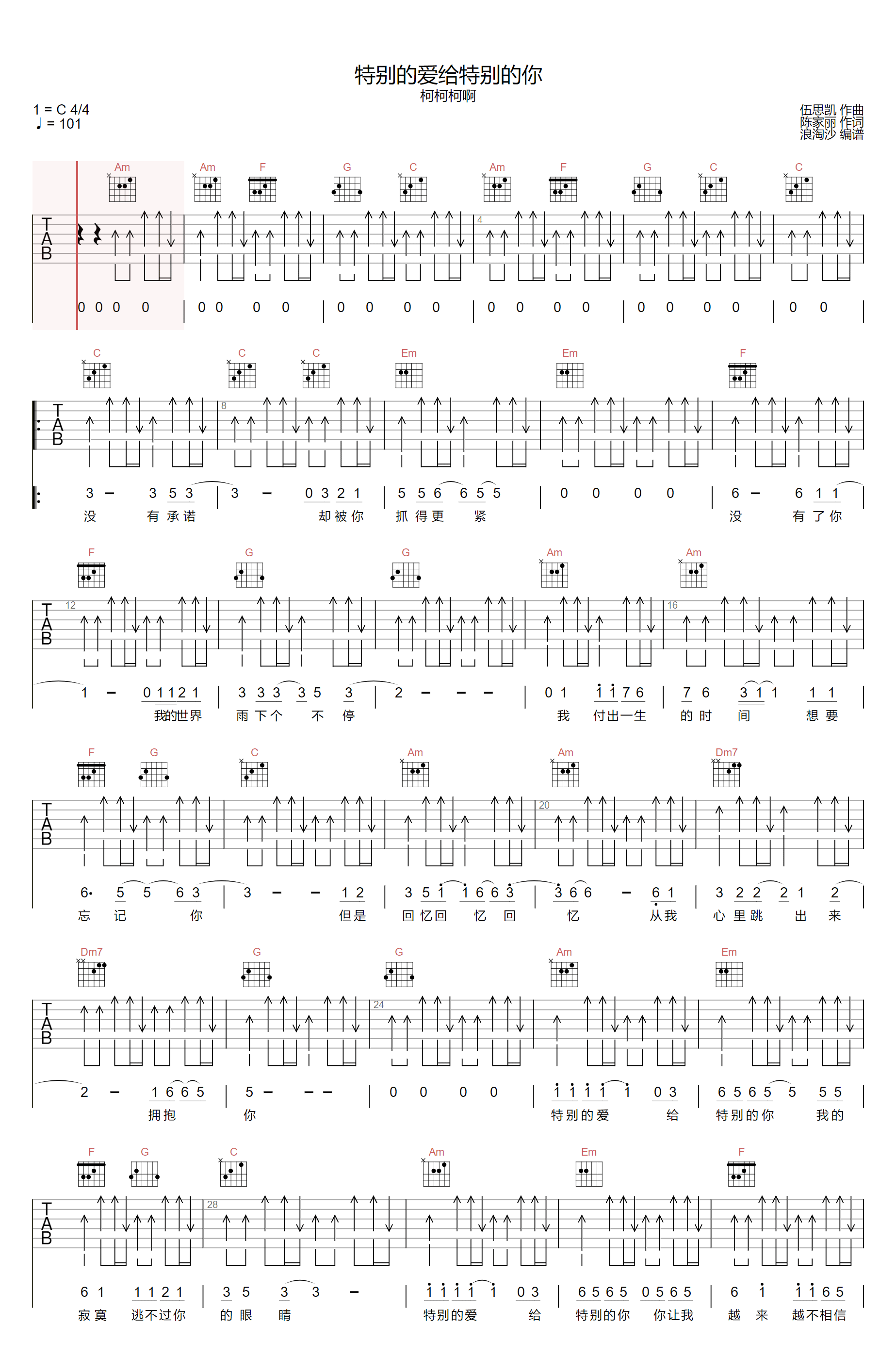 特别的爱给特别的你吉他谱 - 柯柯柯啊 - C调吉他弹唱谱