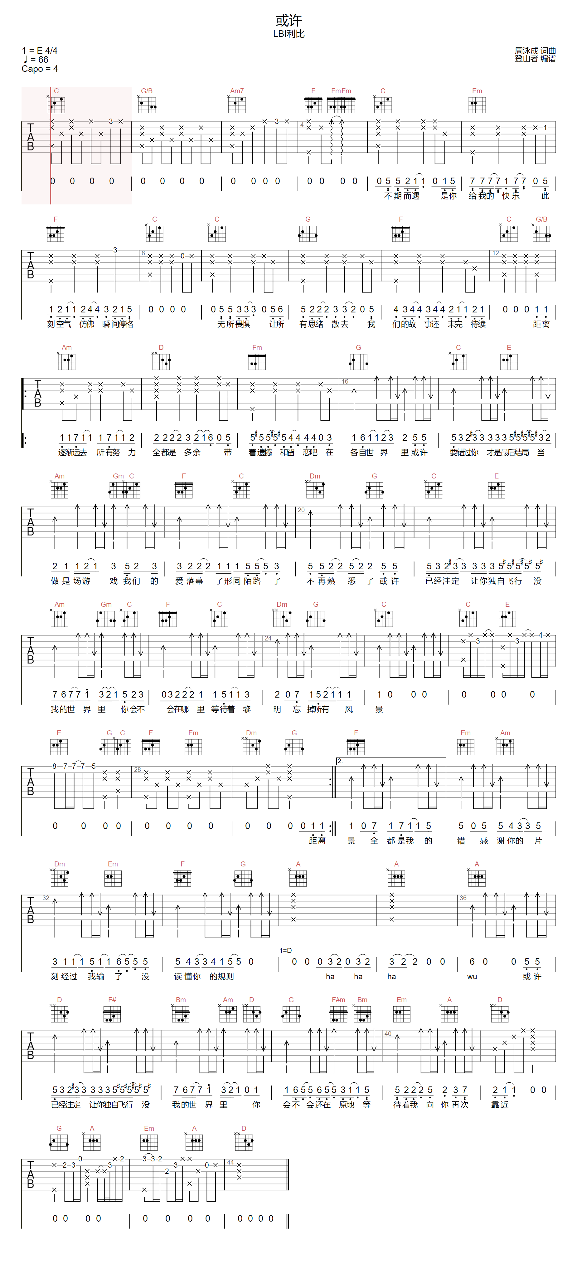 或许吉他谱 - LBI利比 - C调吉他弹唱谱 - 原版