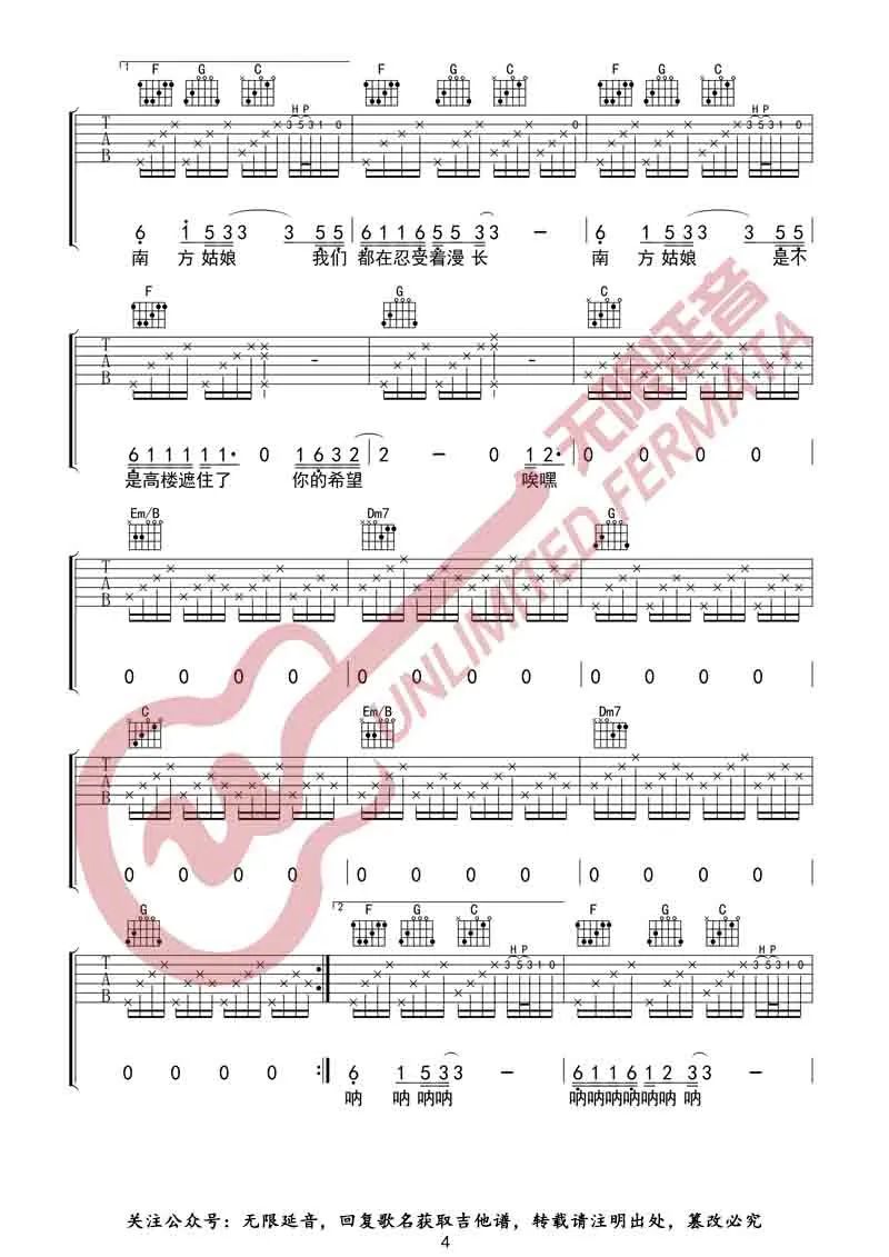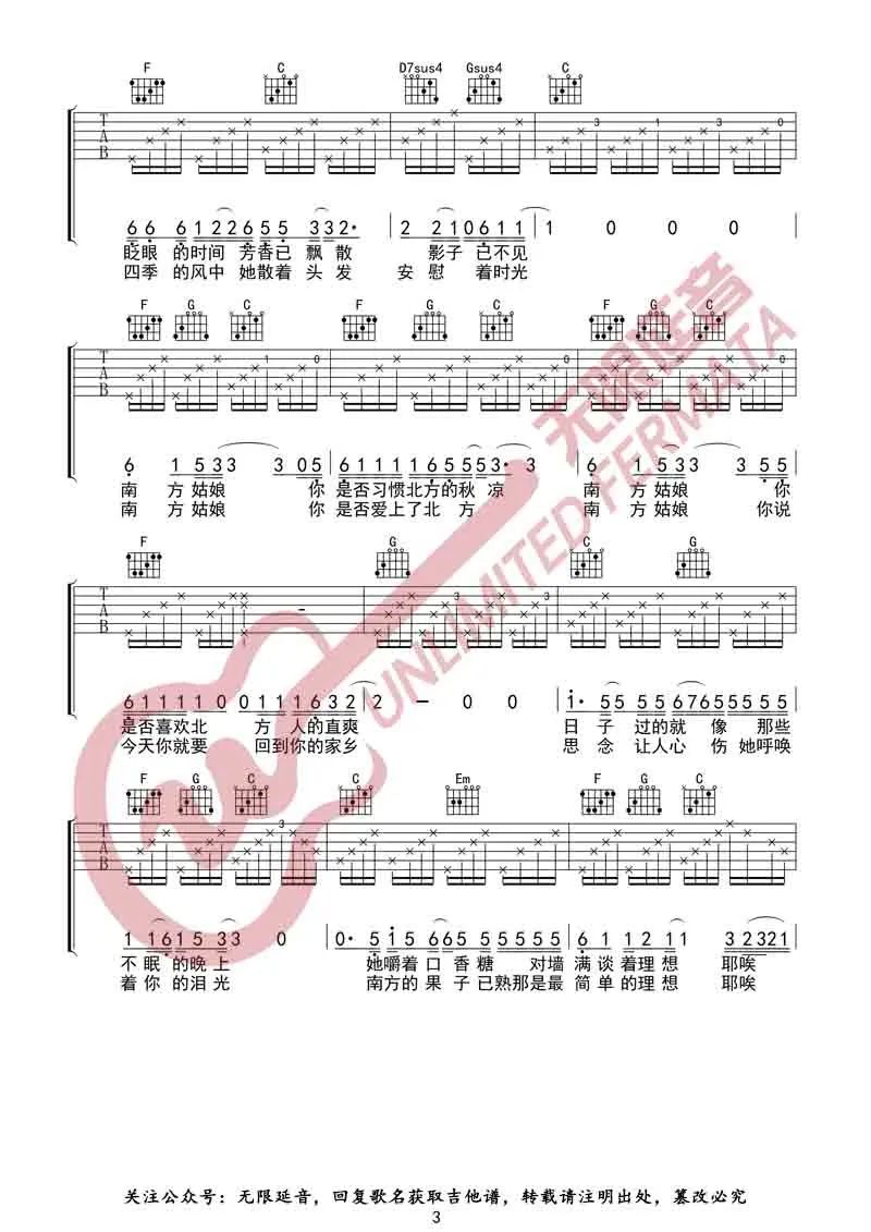 当前位置:琴谱网>吉他弹唱>南方姑娘