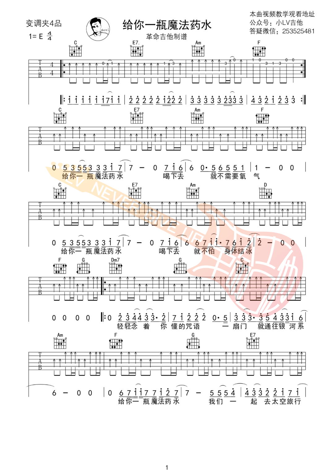 当前位置:琴谱网>吉他弹唱>给你一瓶魔法药水