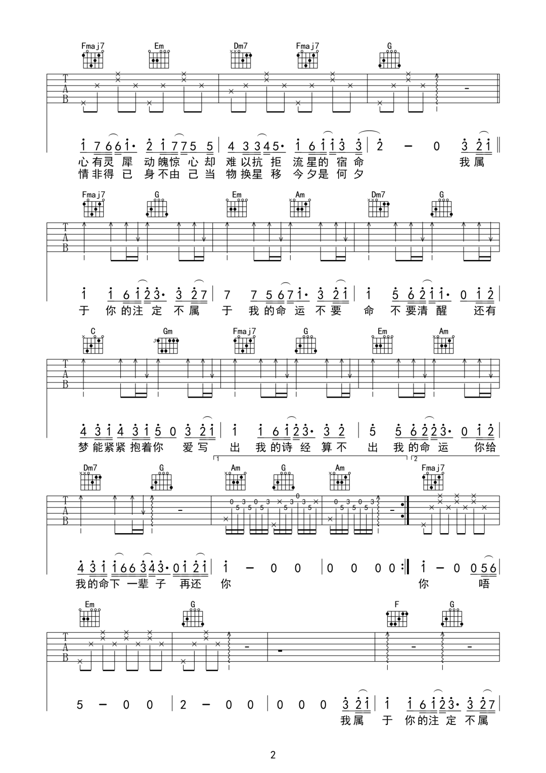 当前位置:琴谱网>吉他弹唱>命运