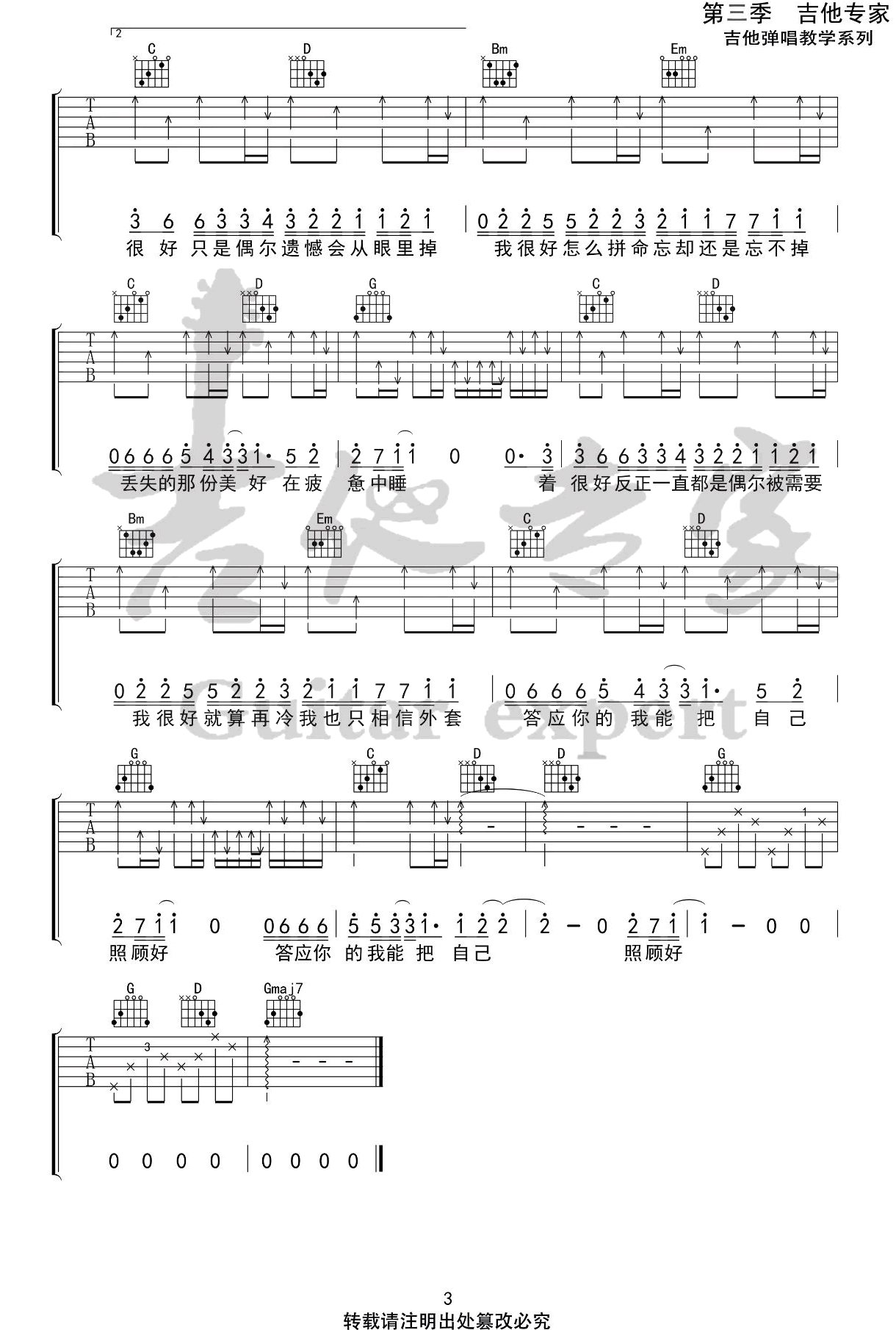 当前位置:琴谱网>吉他弹唱>我很好