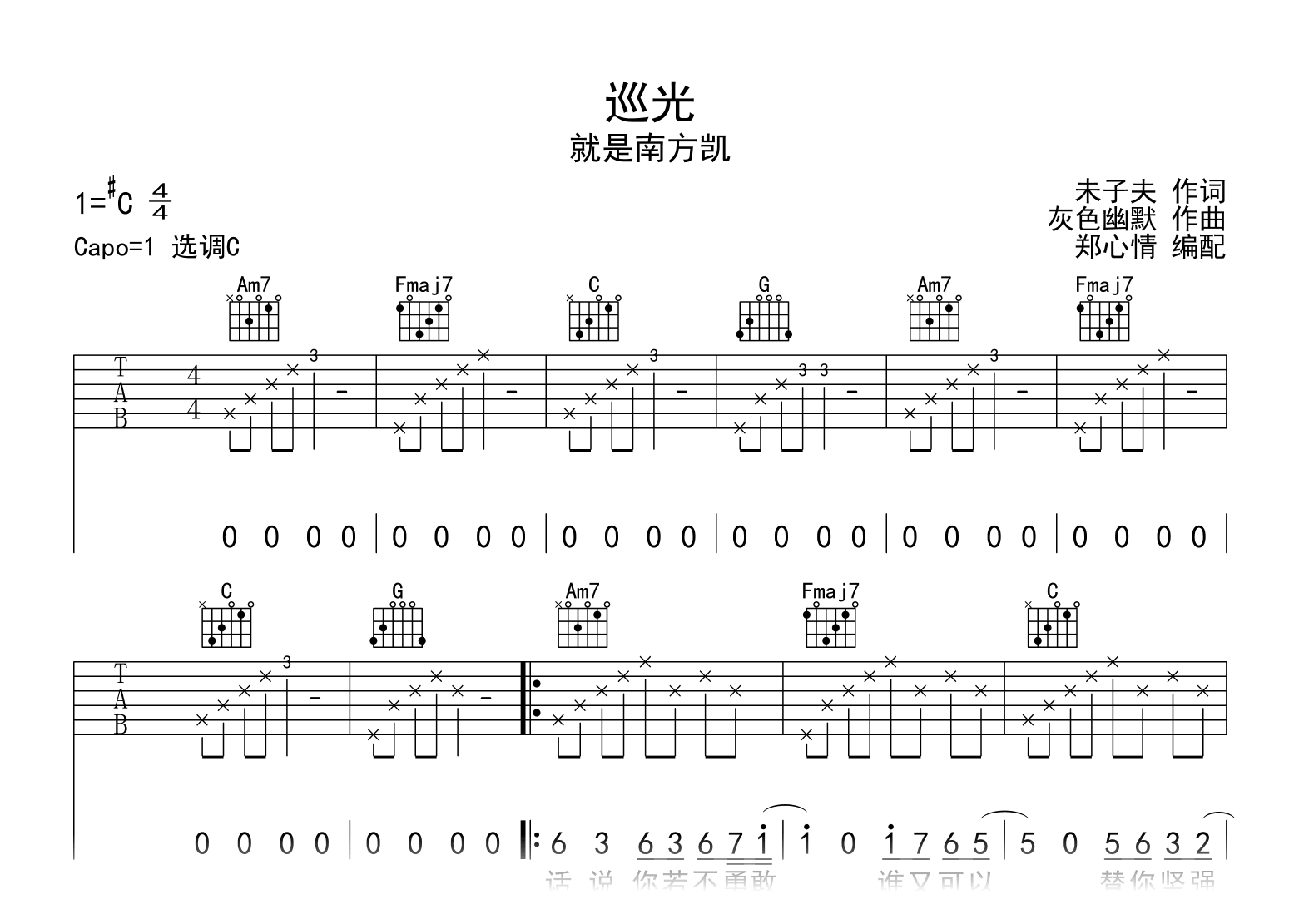 巡光吉他谱 - 就是南方凯 - C调吉他弹唱谱