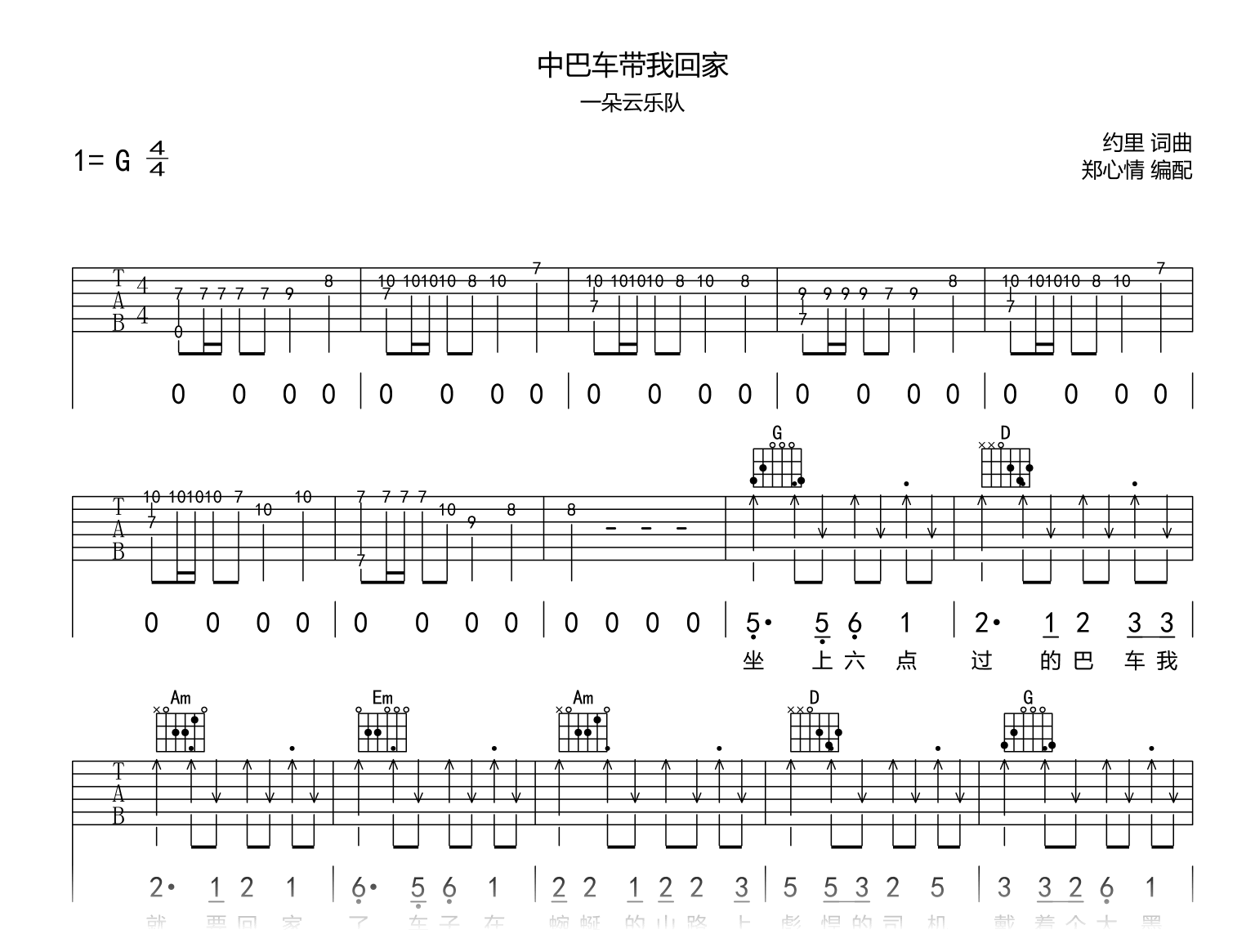 中巴车带我回家吉他谱 - 一朵云乐队 - G调吉他弹唱谱