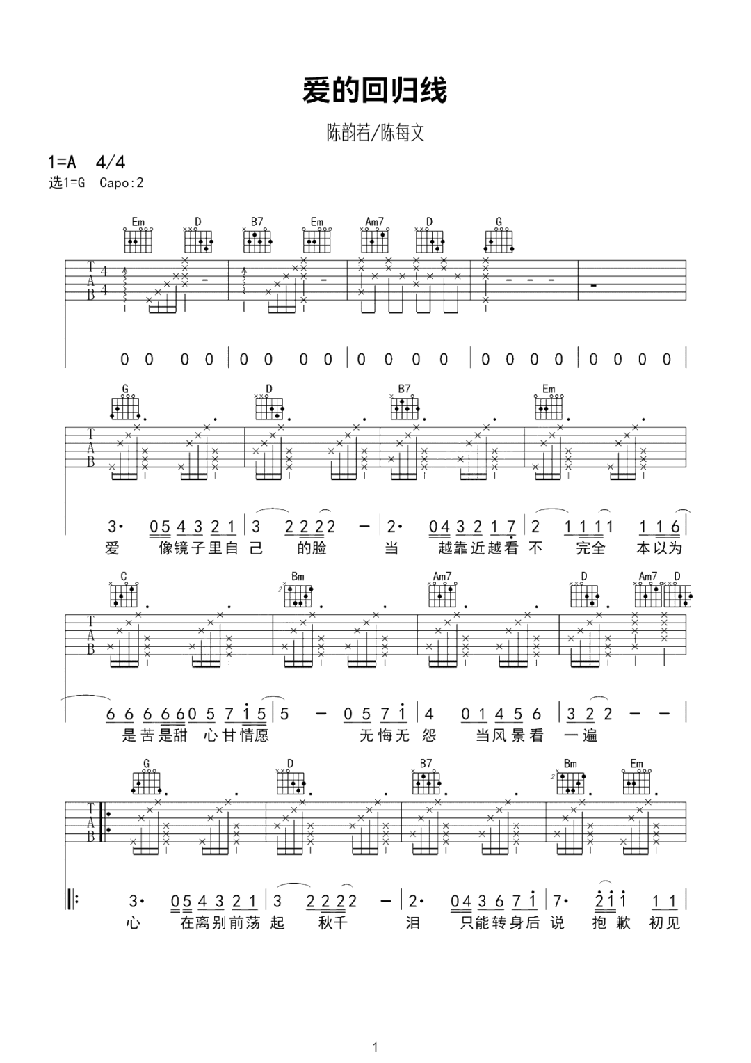 当前位置:琴谱网>吉他弹唱>爱的回归线