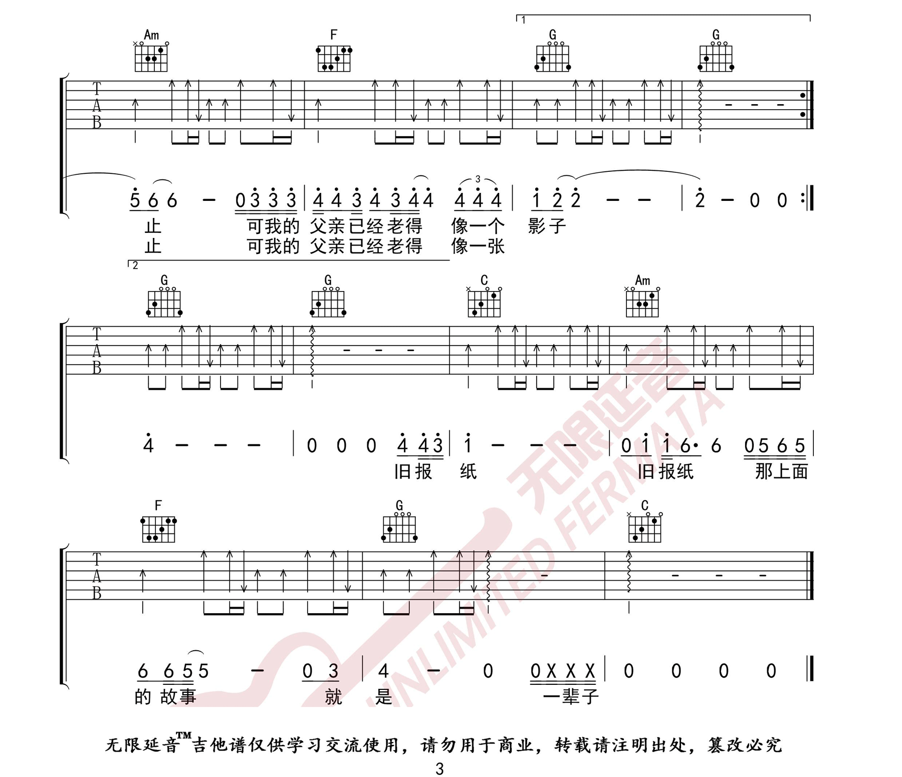 父亲写的散文诗吉他谱 - 许飞 - C调吉他弹唱谱
