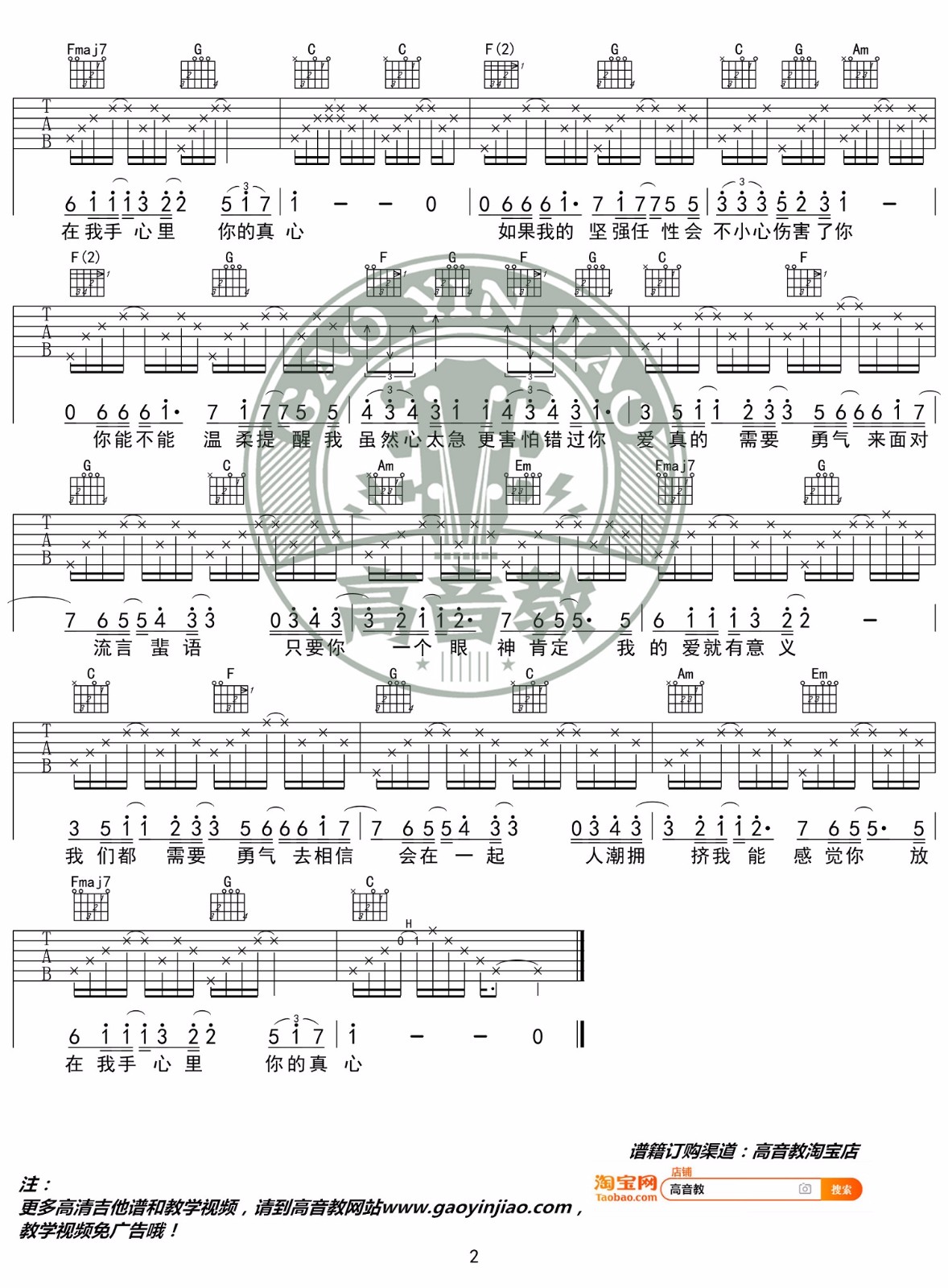 勇气吉他谱 - 梁静茹 - C调吉他弹唱谱