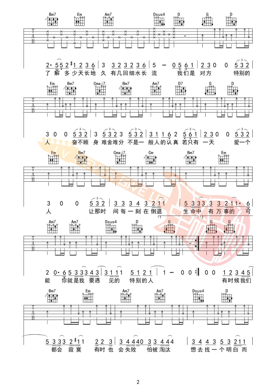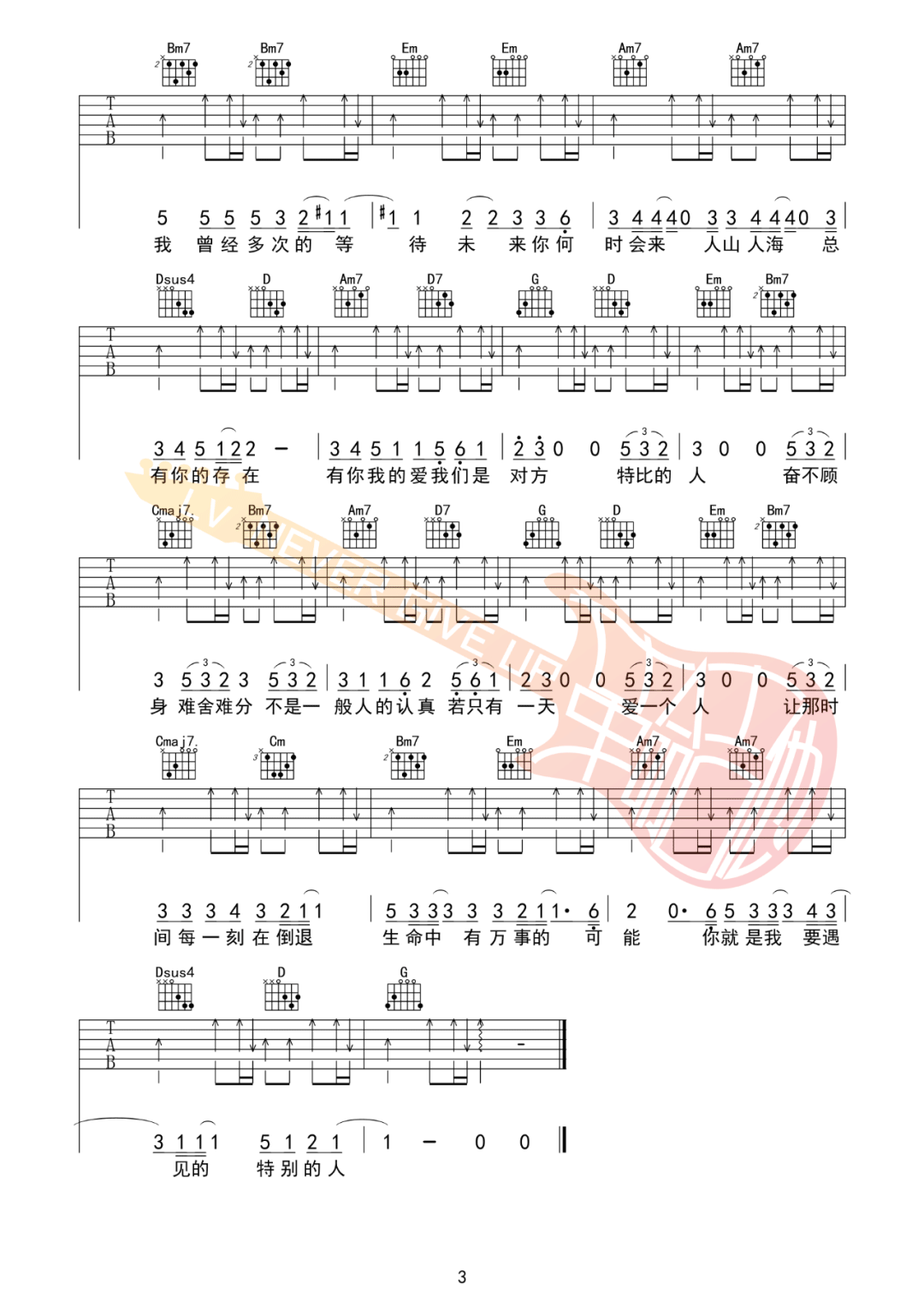 当前位置:琴谱网>吉他弹唱>特别的人