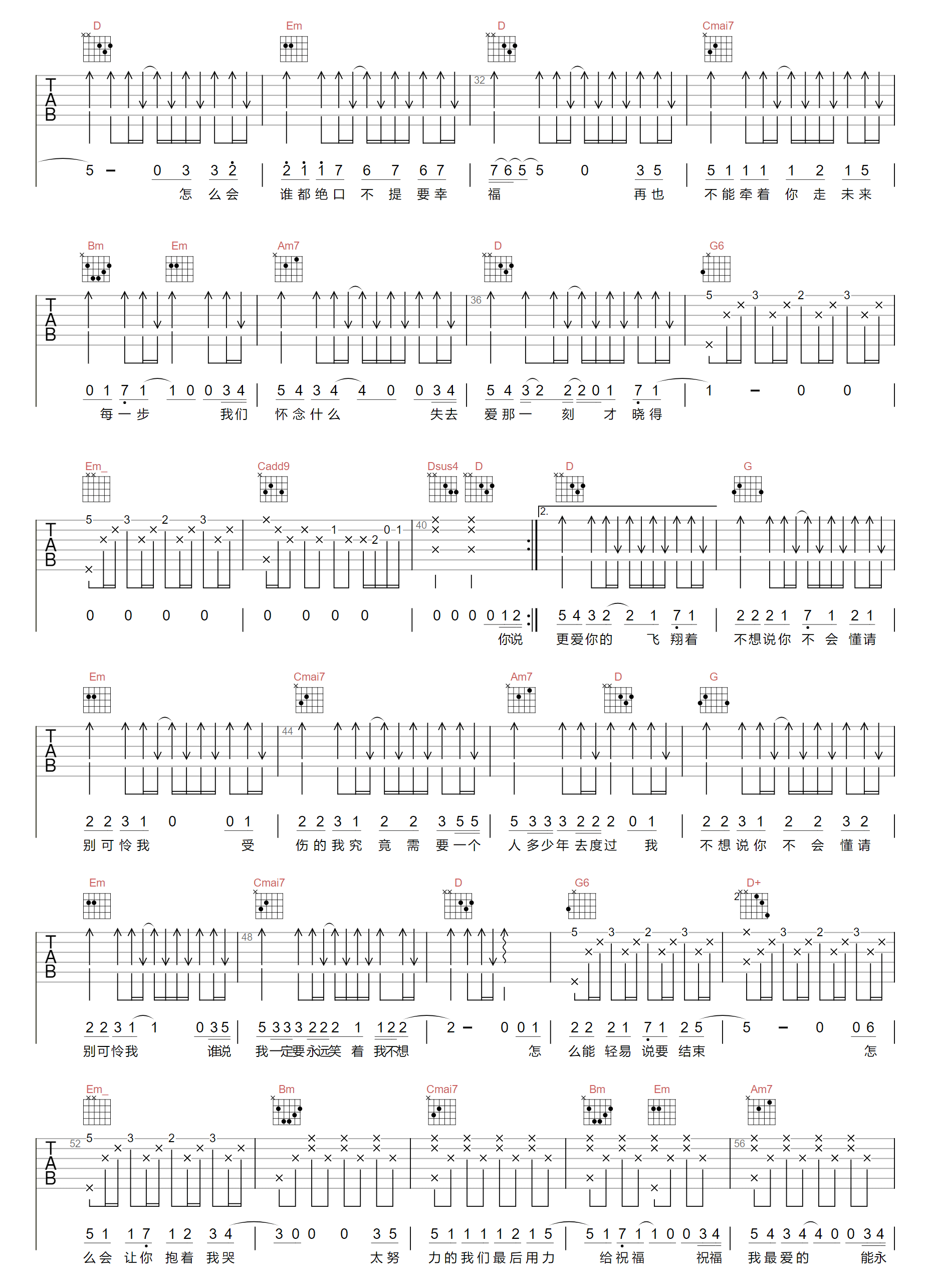 当前位置:琴谱网>吉他弹唱>怎么了