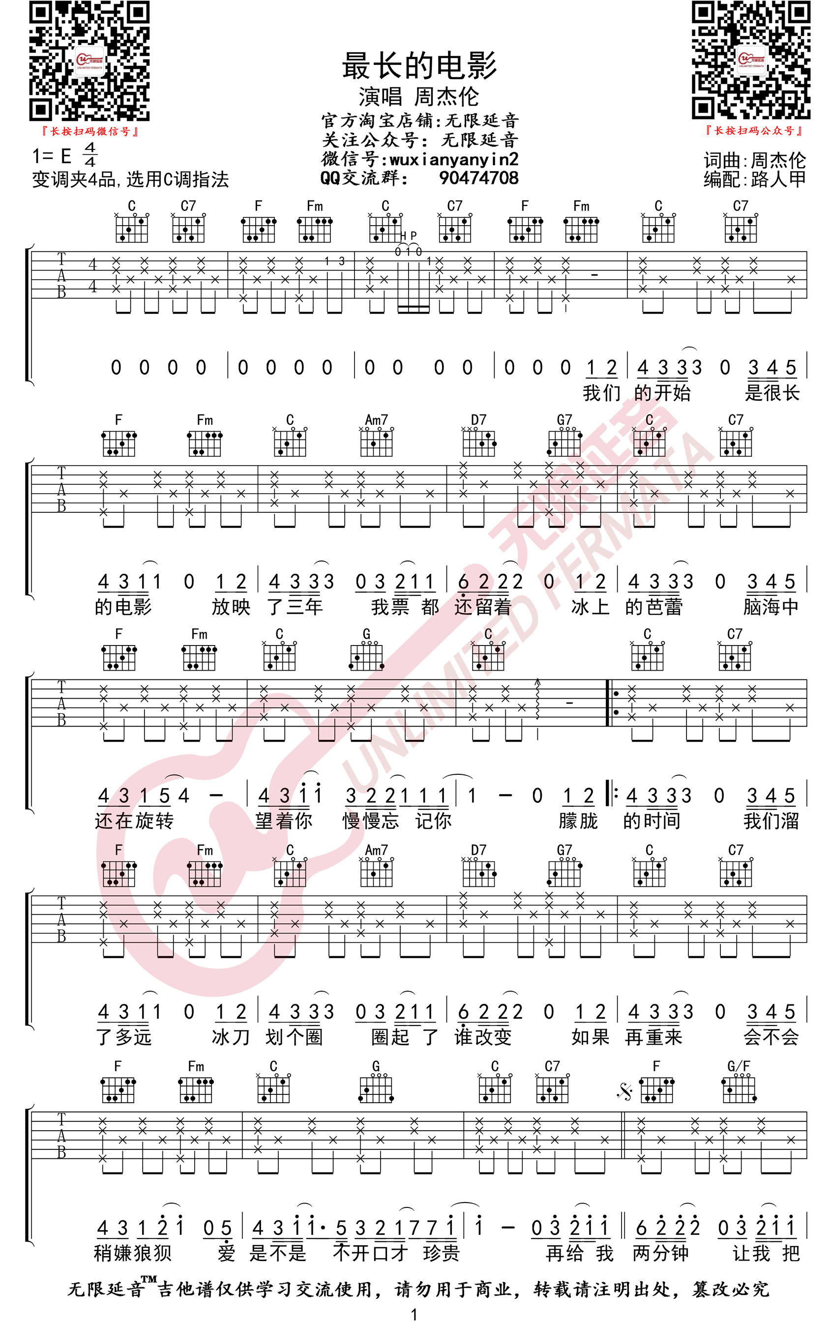 最长的电影吉他谱 - 周杰伦 - C调吉他弹唱谱 - 原版