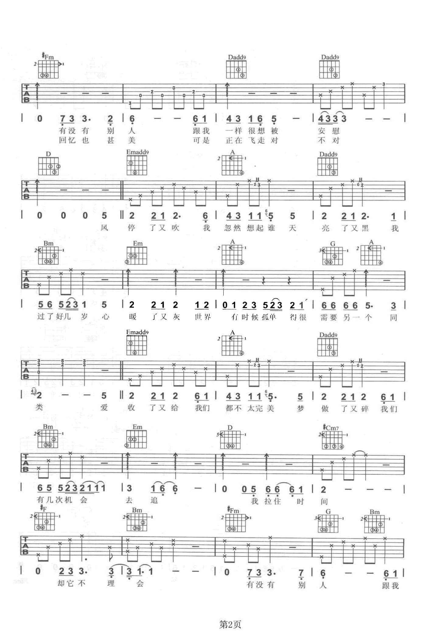 曲谱介绍: 吉他谱介绍:同类吉他谱,孙燕姿演唱的一首歌曲,4/4拍的节奏,这首歌曲的原调为D调,这里曲谱采用了D调指法进行编配,演唱时可不夹变调夹,曲谱由琴谱网更新上传,共3张高清图片弹唱吉他谱例,曲谱来源于网络转载,编配制谱者暂不详。充满复古情怀的曲式,由大陆小提琴主席带领最好的弦乐班演出绝佳的弦乐,收放之间带出时空变换的气韵,作词人易家扬老师细腻敏锐的歌词,牵引孙燕姿最深沉的情绪,也是专辑中最深刻而触动人心的歌曲。