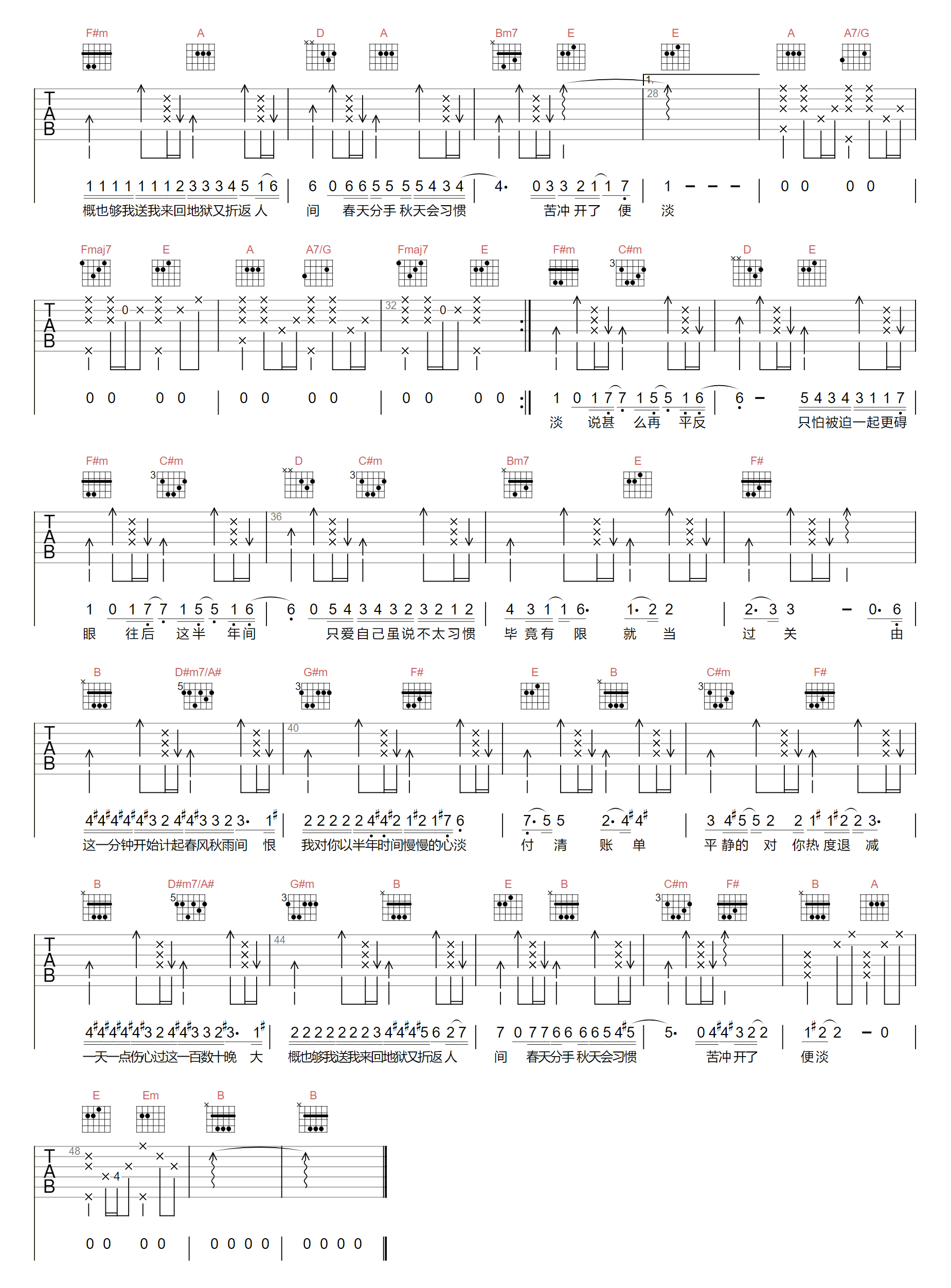 当前位置:琴谱网>吉他弹唱>心淡