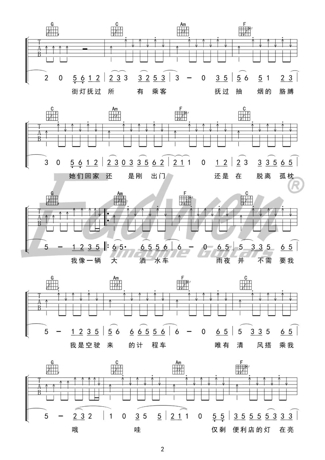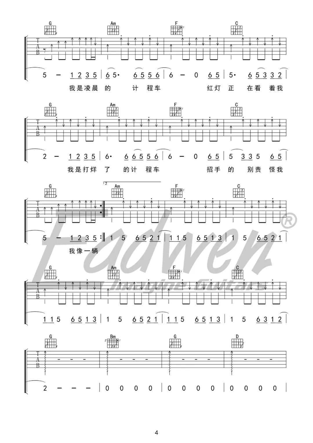 当前位置:琴谱网>吉他弹唱>凌晨计程车