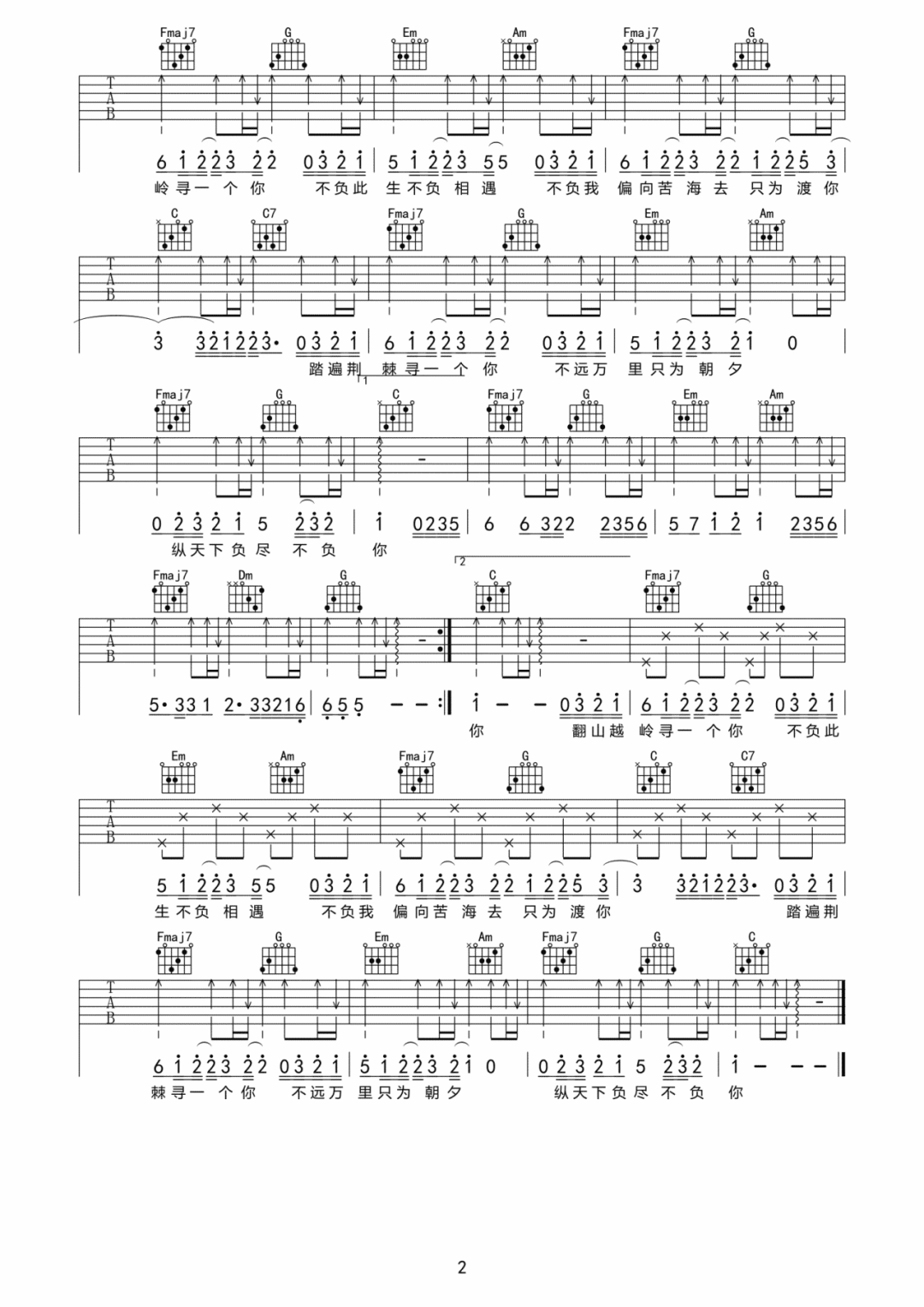 当前位置:琴谱网>吉他弹唱>寻一个你