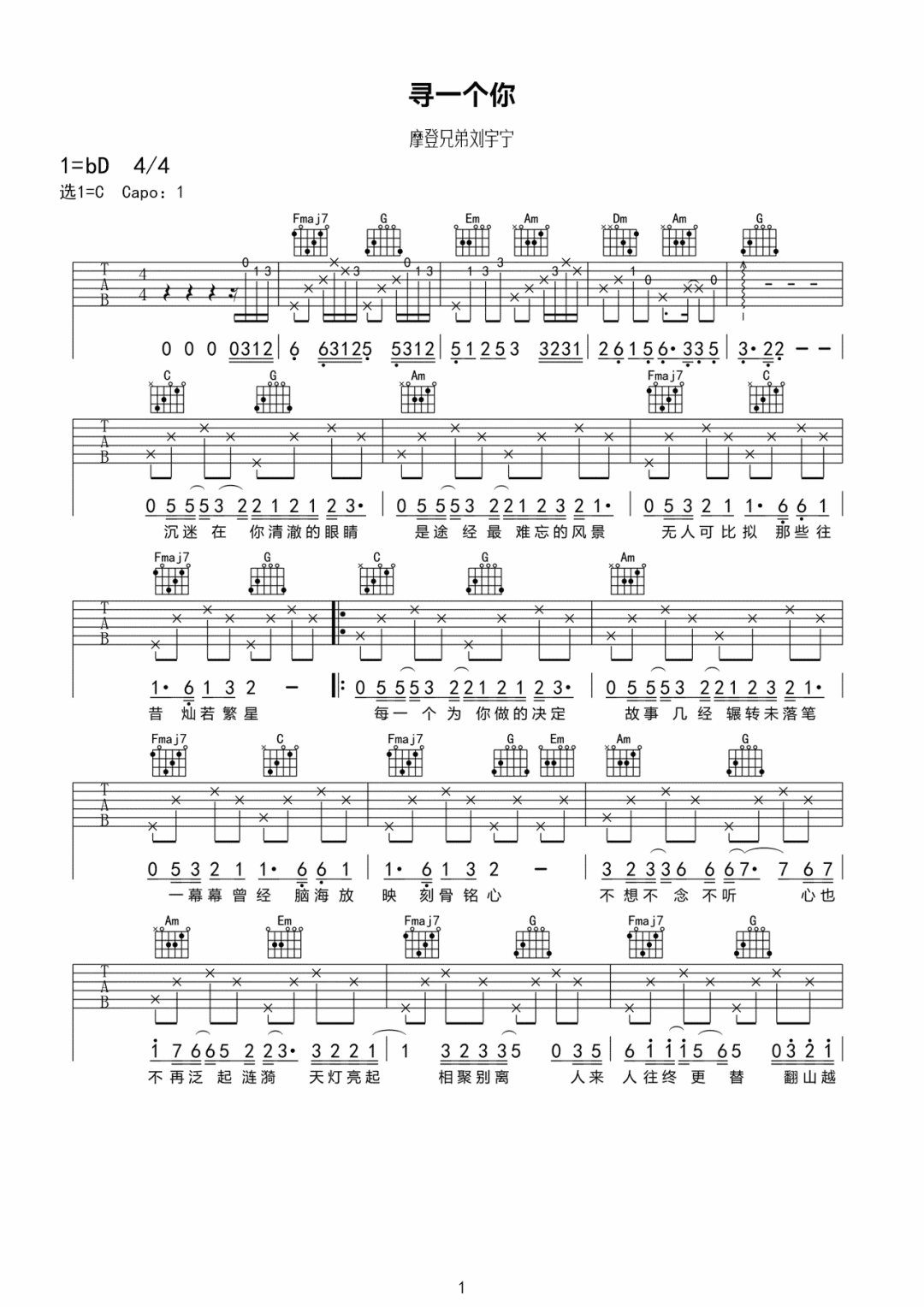 寻一个你吉他谱 - 刘宇宁 - C调吉他弹唱谱 - 原版