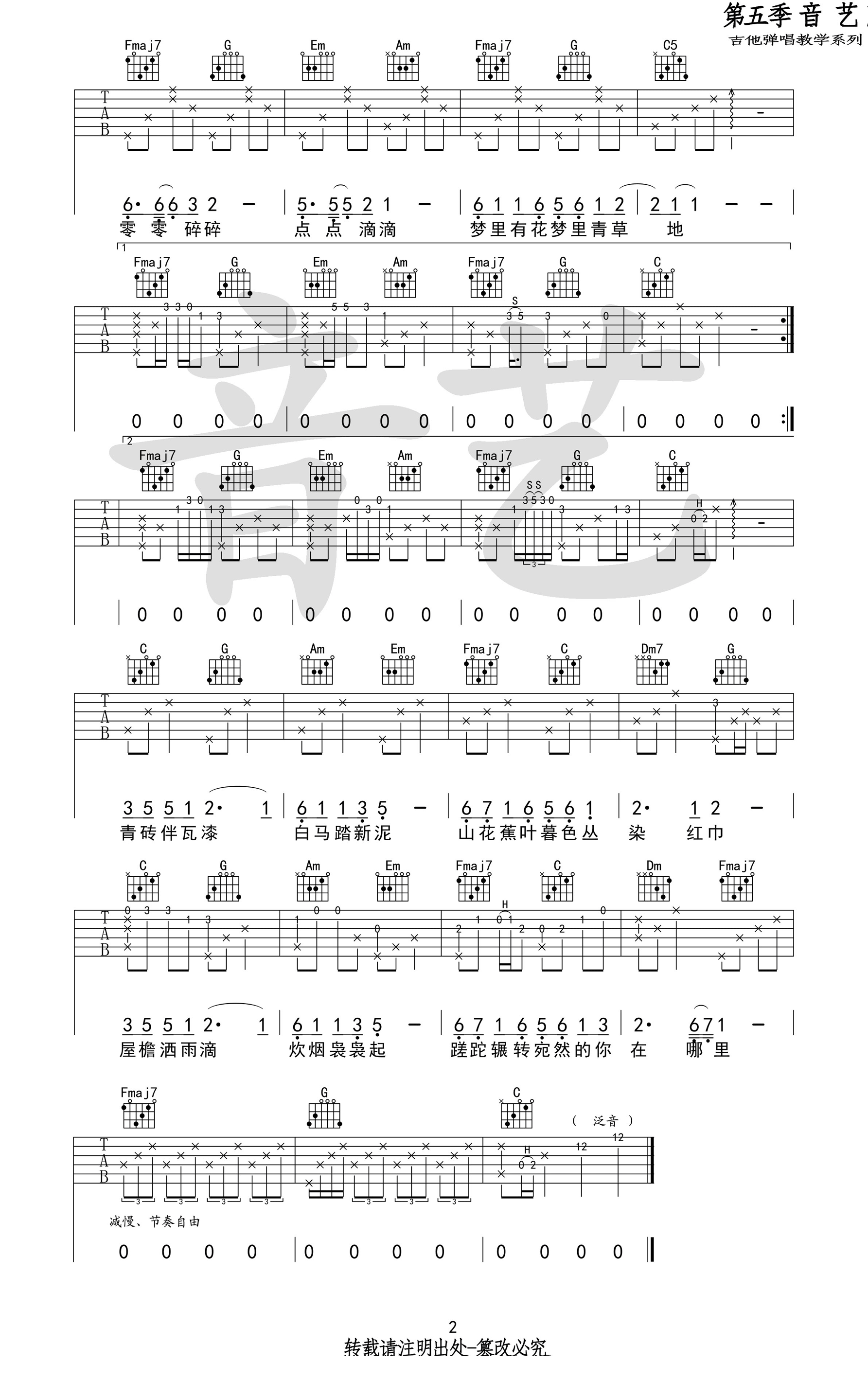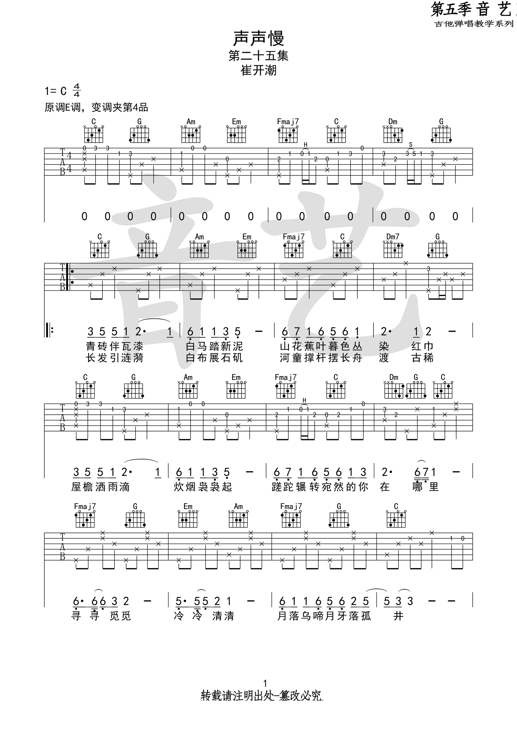 声声慢吉他谱 - 崔开潮 - C调吉他弹唱谱 - 原版