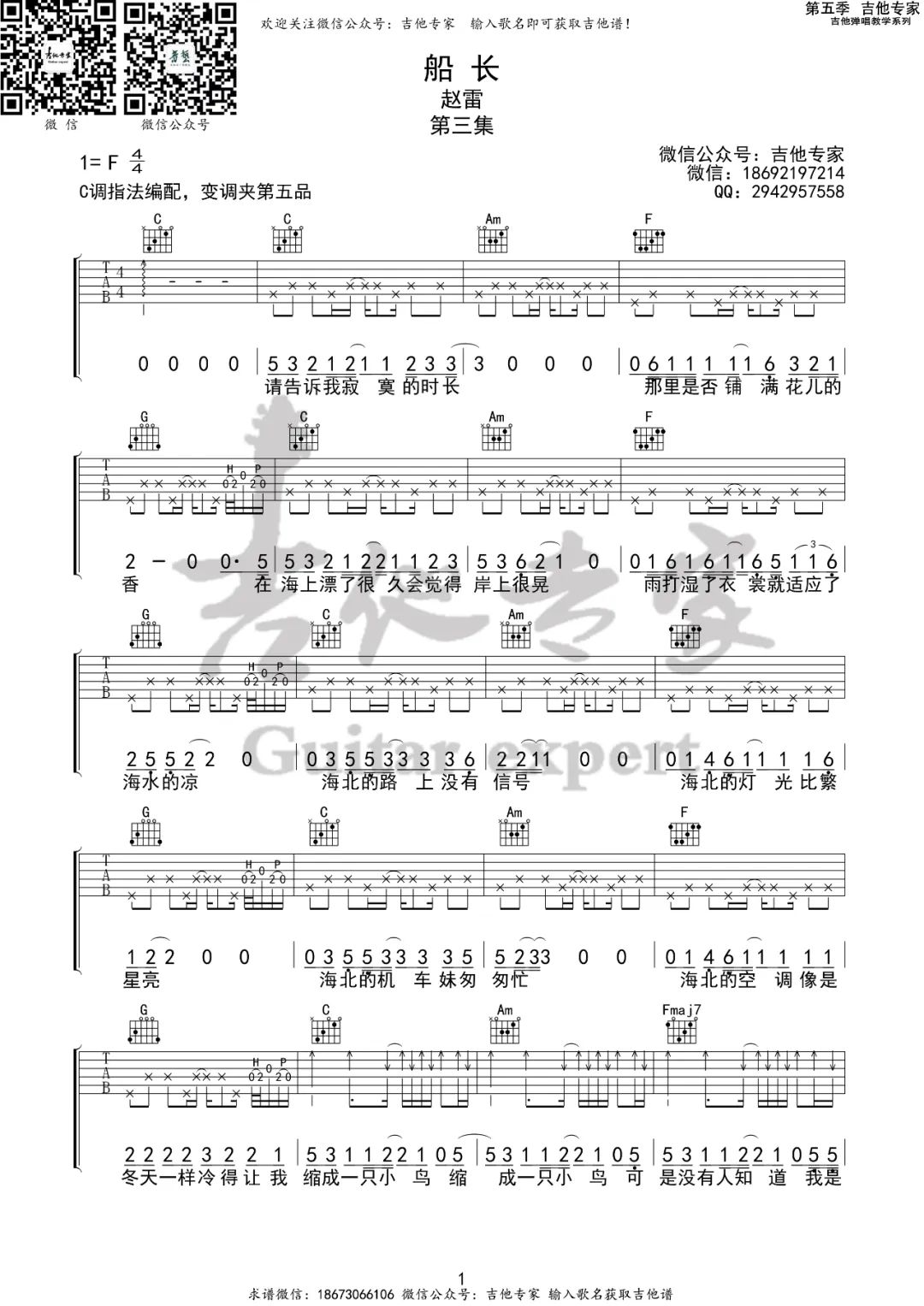 琴谱网为您精心推荐 船长 高清图谱