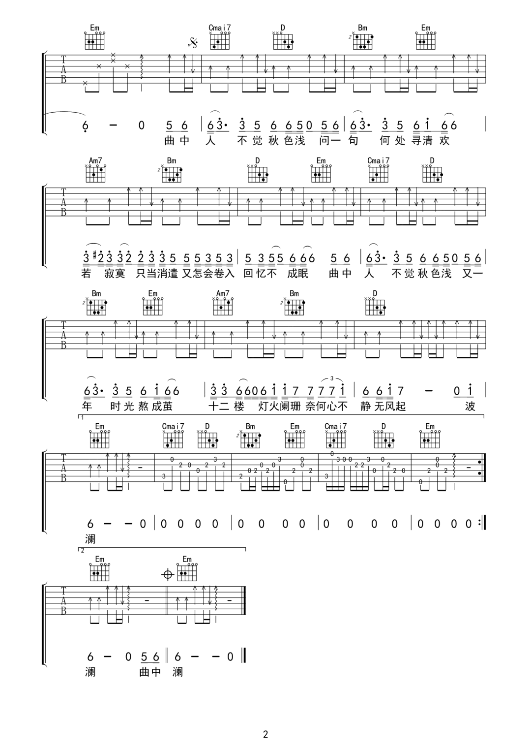 当前位置:琴谱网>吉他弹唱>不觉秋色浅