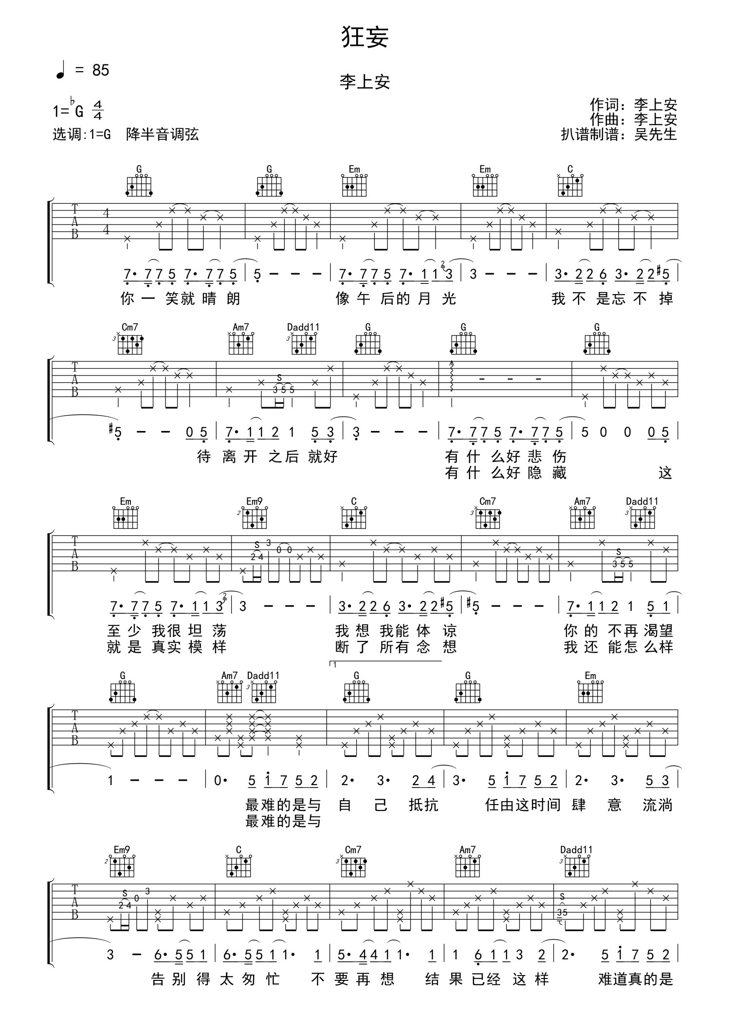 • 狂妄吉他谱 - 李上安 - G调吉他弹唱谱第1张