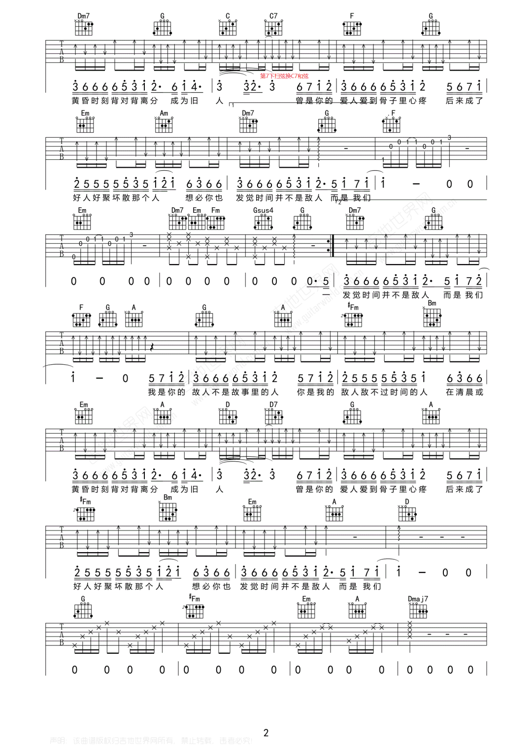 当前位置:琴谱网>吉他弹唱>为敌