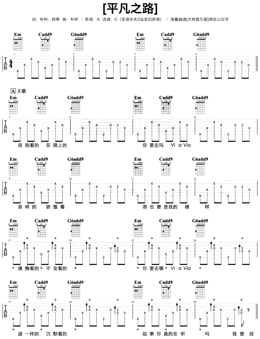 平凡之路吉他谱 - 朴树 - G调吉他弹唱谱 - 原版