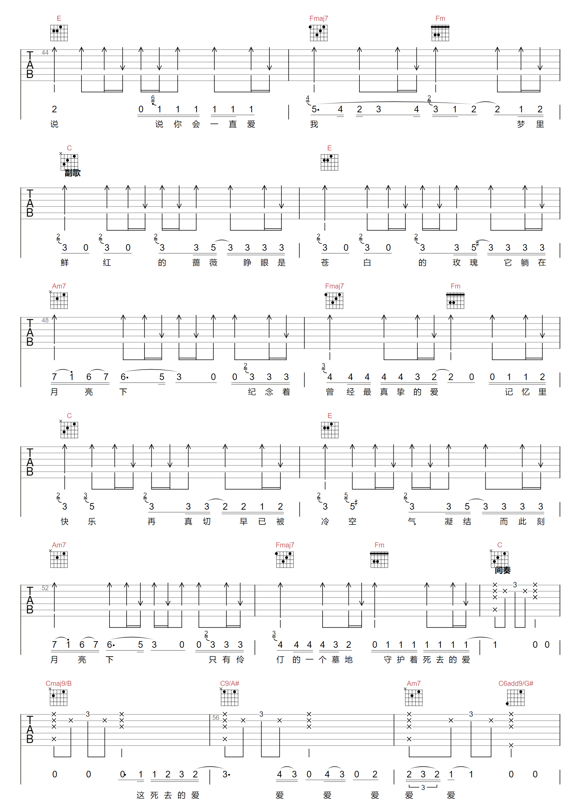 当前位置:琴谱网>吉他弹唱>红蔷薇白玫瑰