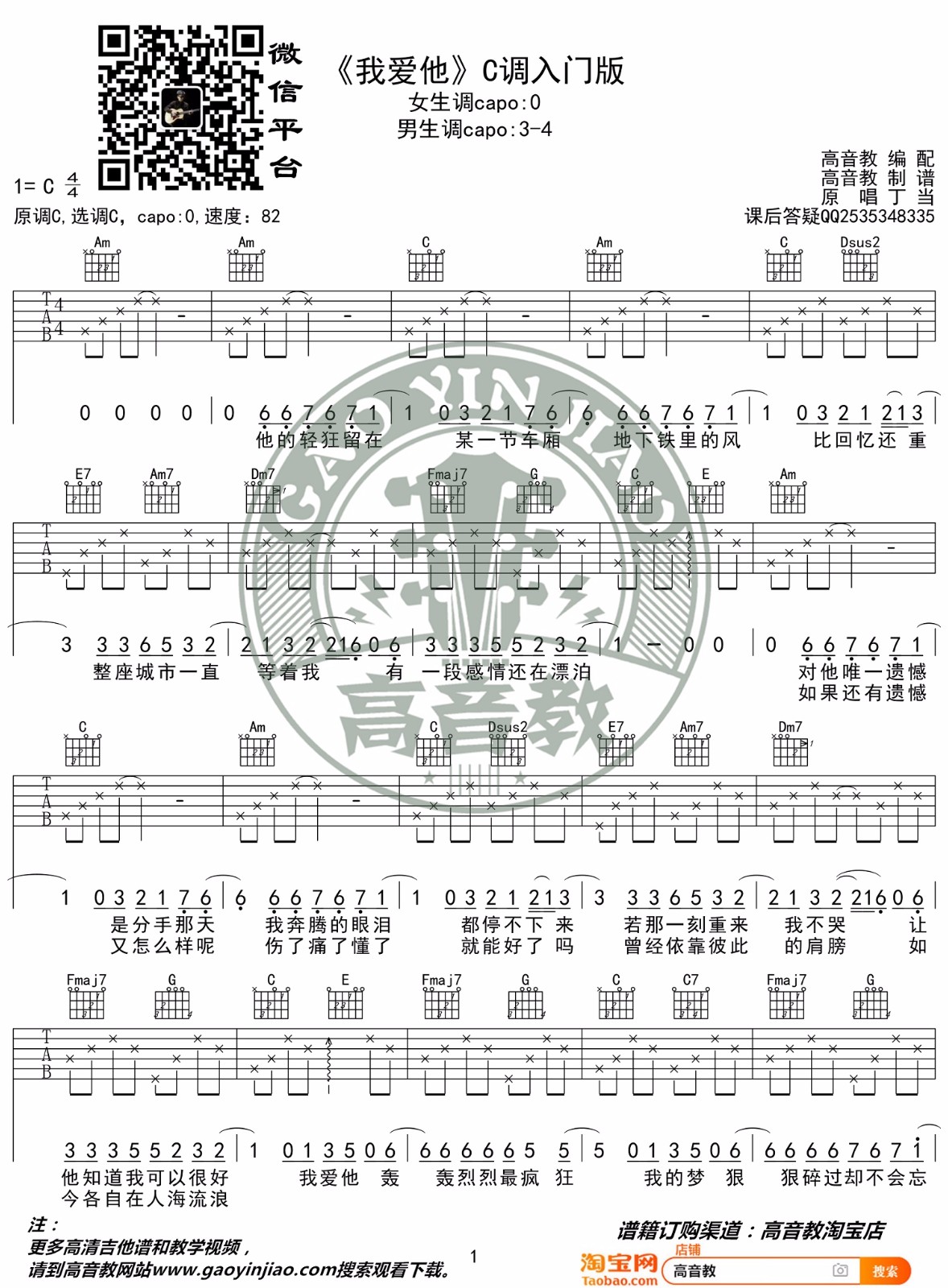 我爱他吉他谱 - 丁当 - C调吉他弹唱谱