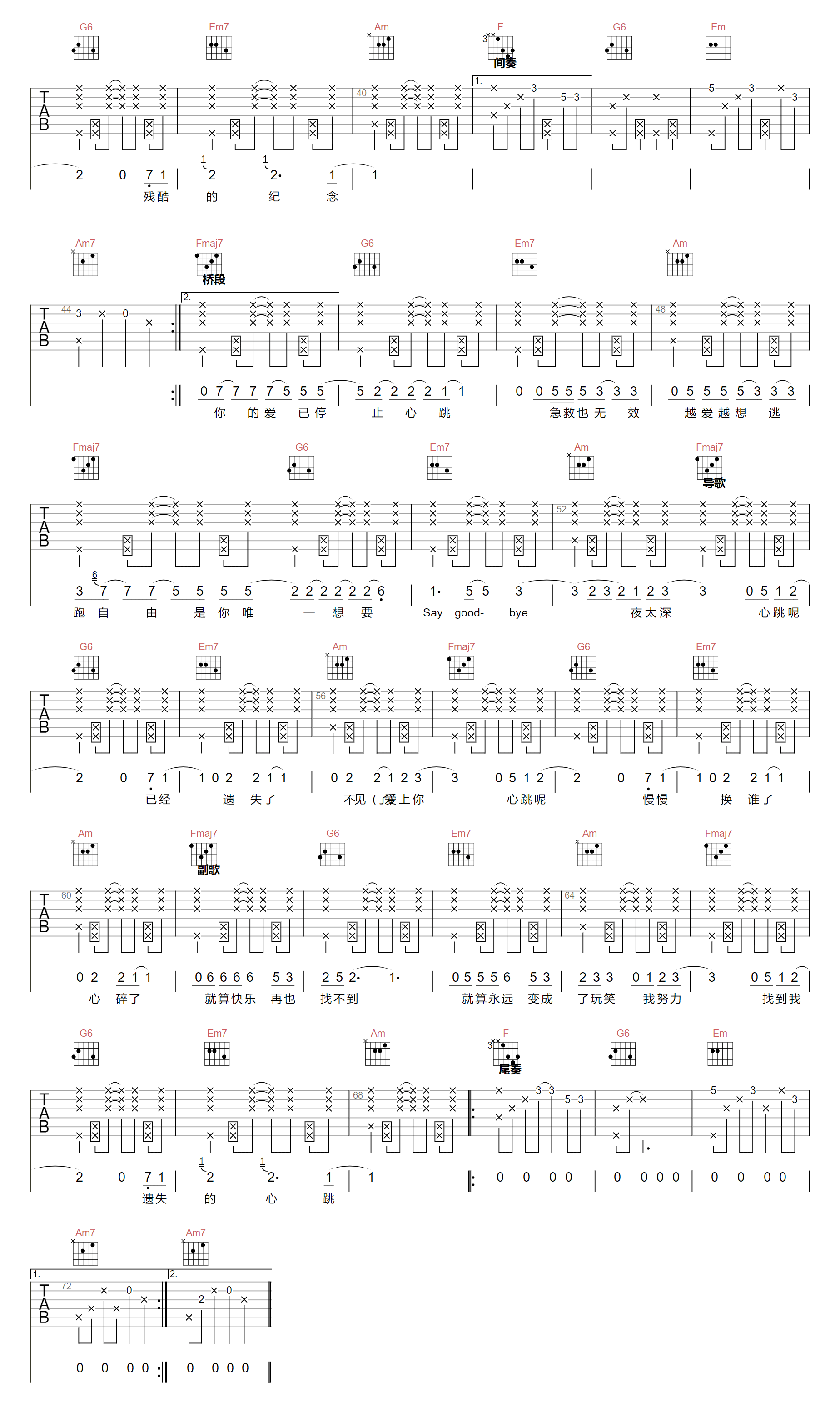 当前位置:琴谱网>吉他弹唱>遗失的心跳