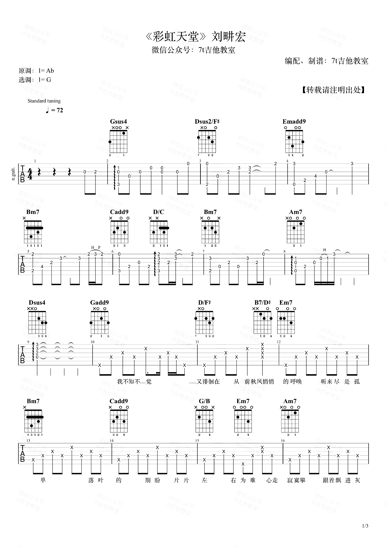 彩虹天堂吉他谱 - 刘畊宏 - G调吉他弹唱谱 - 原版