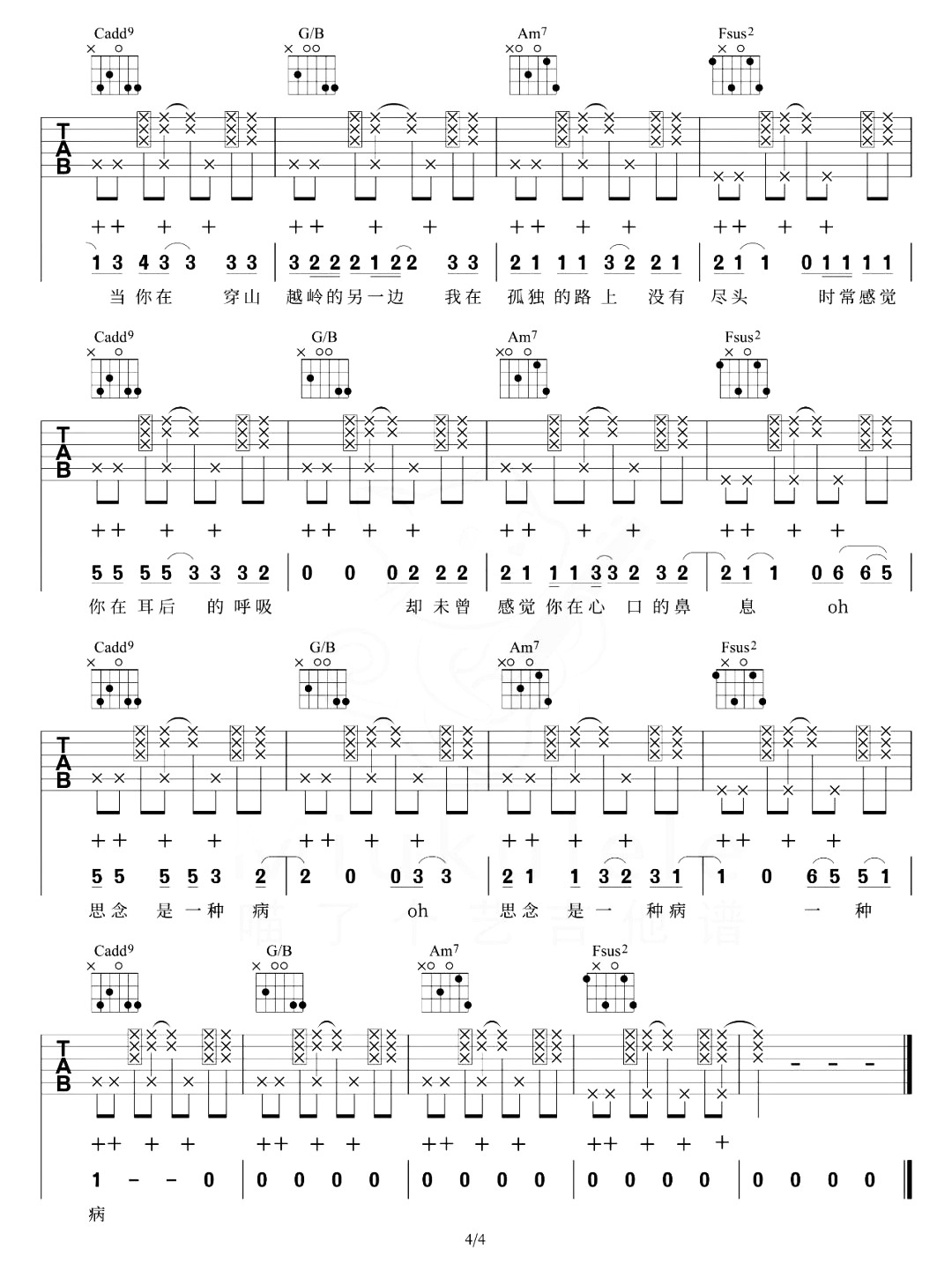 当前位置:琴谱网>吉他弹唱>思念是一种病