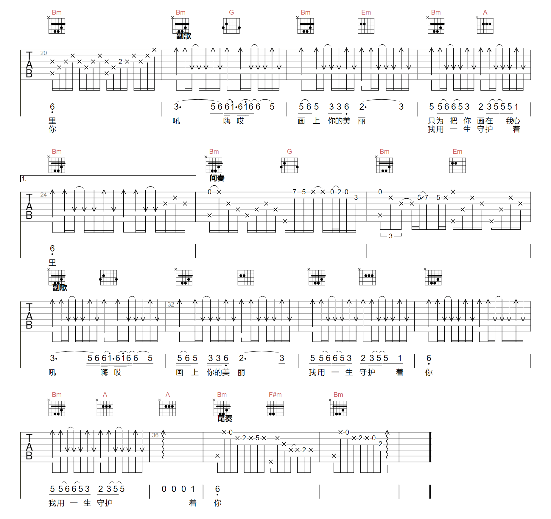当前位置:琴谱网>吉他弹唱>画你