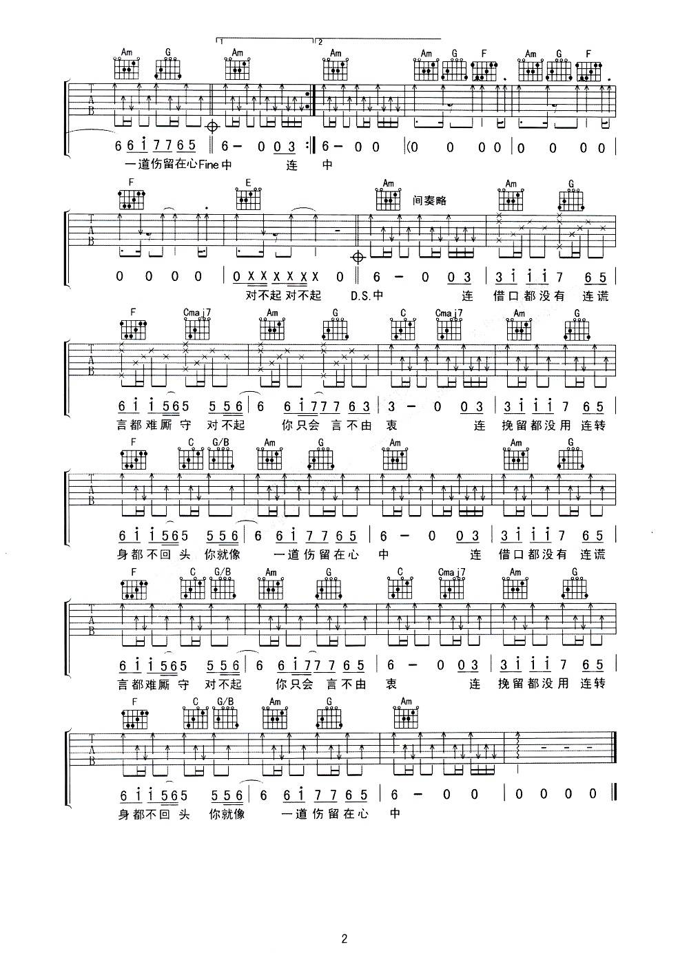 当前位置:琴谱网>吉他弹唱>连借口都没有